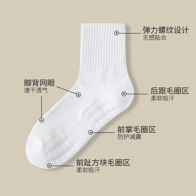 袜子男中筒袜男士袜子吸汗透气长筒袜篮球袜白色男袜白色白塔袜子