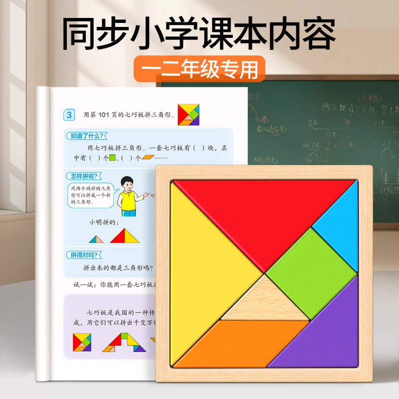 七巧板拼图木质数学教具小学生一年级专用智力开发幼儿园儿童玩具