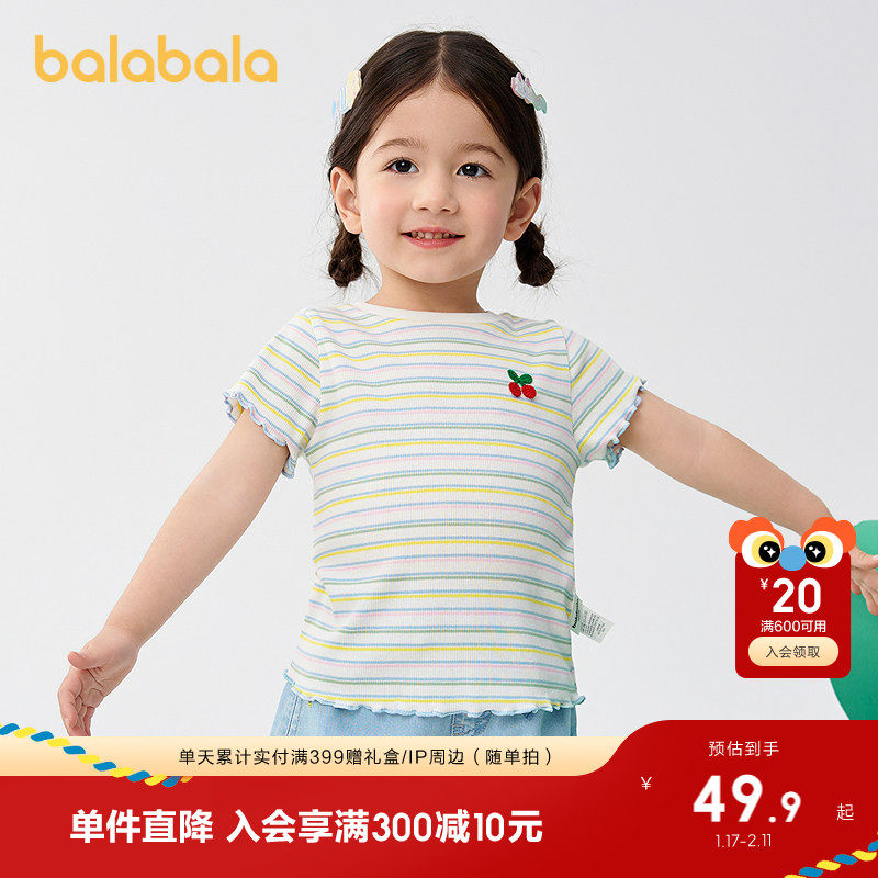巴拉巴拉童装儿童短袖t恤女宝宝夏装甜美2025新款萌休闲百搭上衣