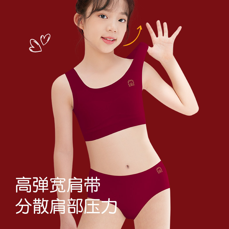 儿童本命年红色内衣内裤套装12岁女孩背心发育期文胸2026年属马年