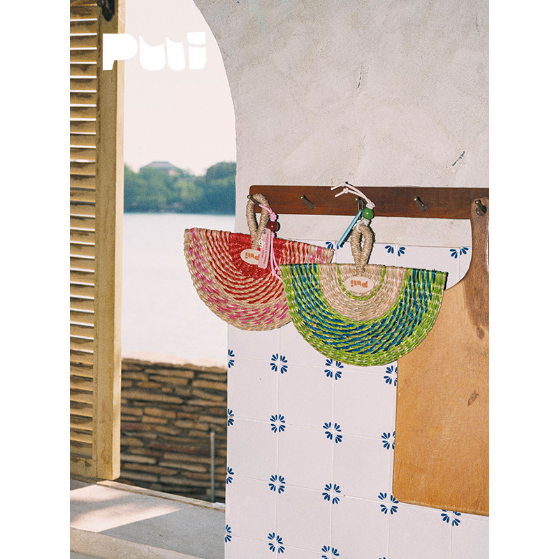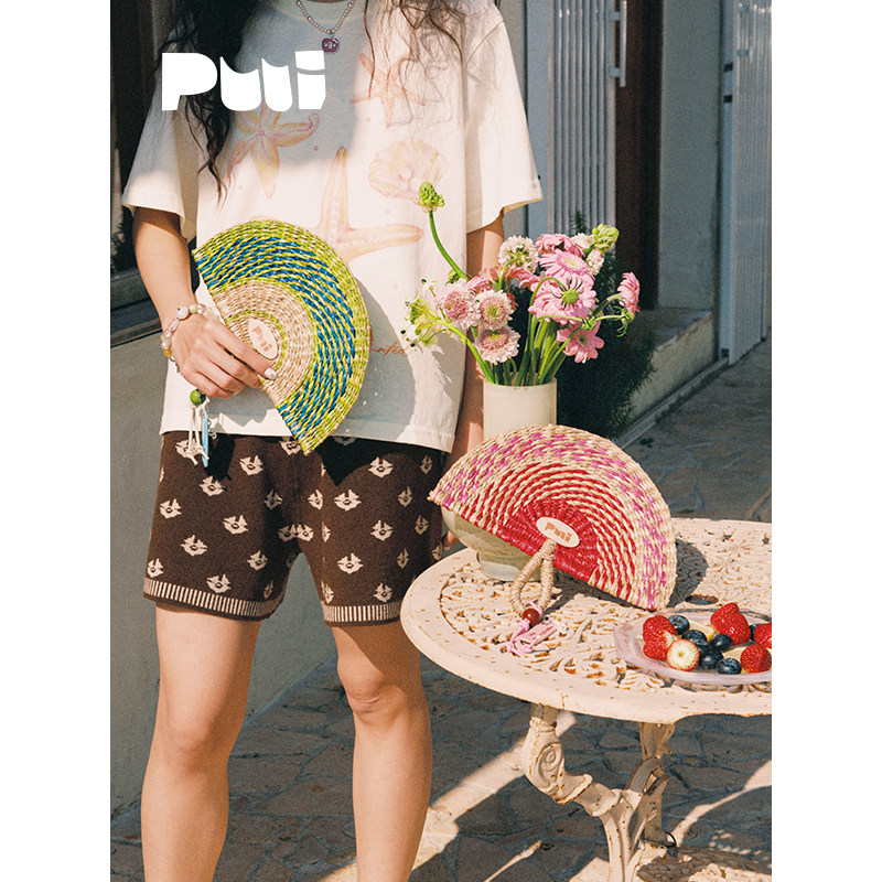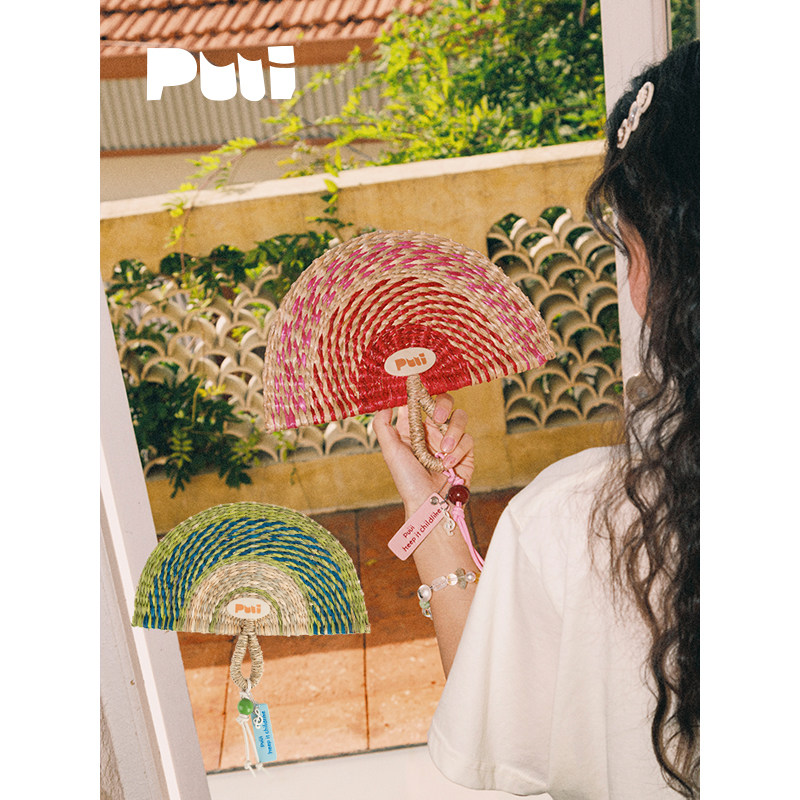 puui噗又原创糖果乐园草编扇便携圆扇蒲扇春夏中式氛围感小扇子