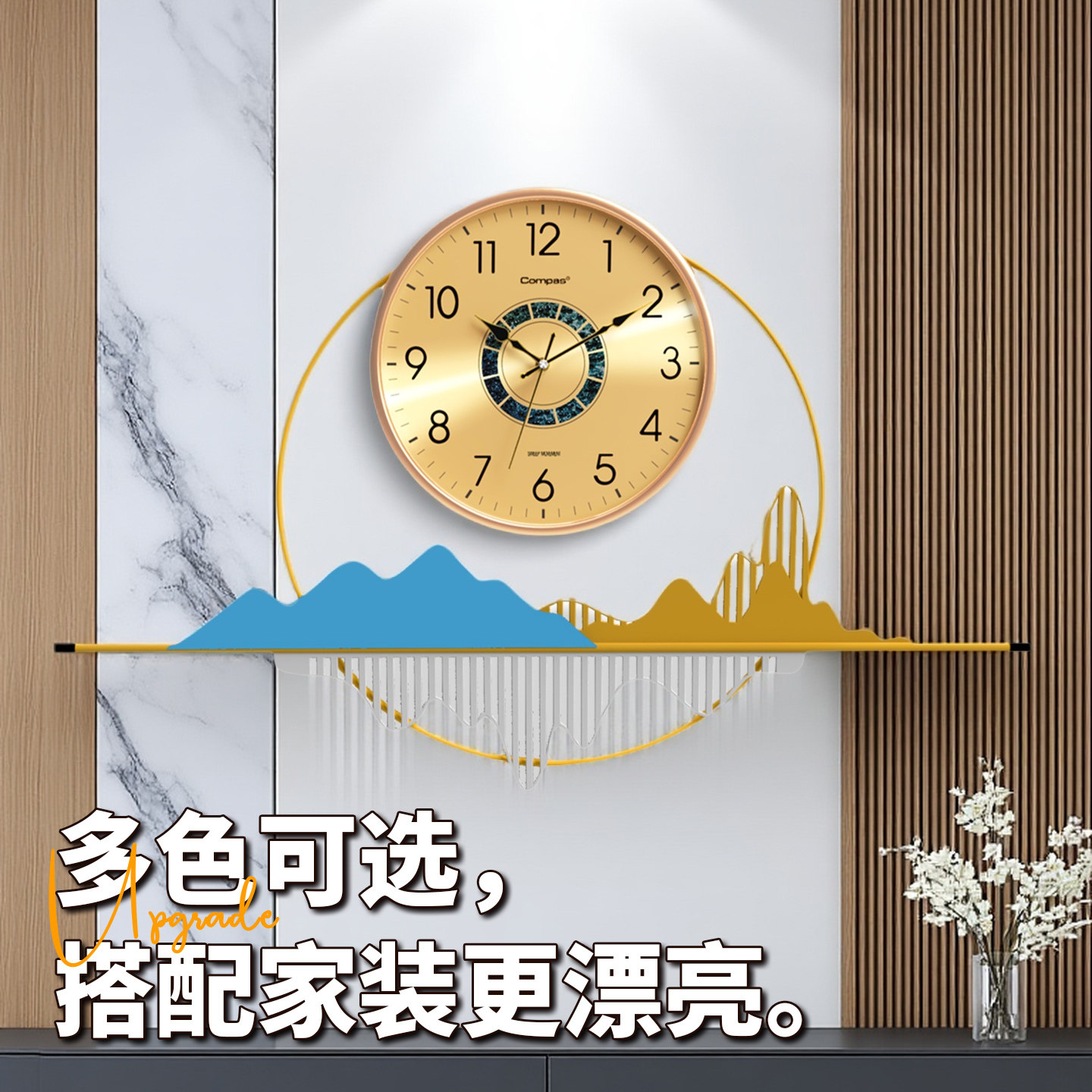 TIMESS钟表挂钟客厅家用2026新款轻奢挂表免打孔静音电波时钟挂墙