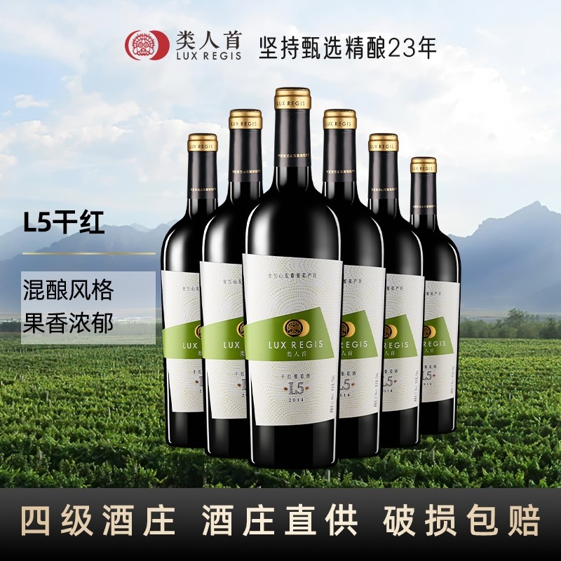 类人首 宁夏红酒L5赤霞珠混酿干红葡萄酒750ml*6支装酒庄直供