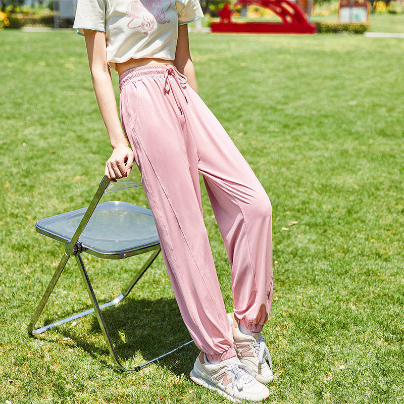 唐狮夏季阔腿休闲运动裤女凉感薄款高腰显瘦冰丝防晒黑色束脚裤子