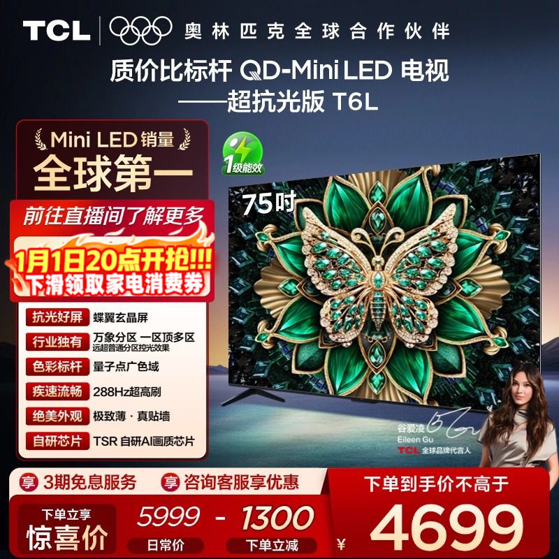 TCL电视 75T6L 75英寸 QD-Mini LED 万象分区 量子点 平板电视机