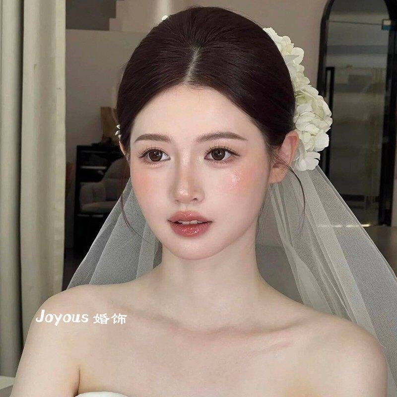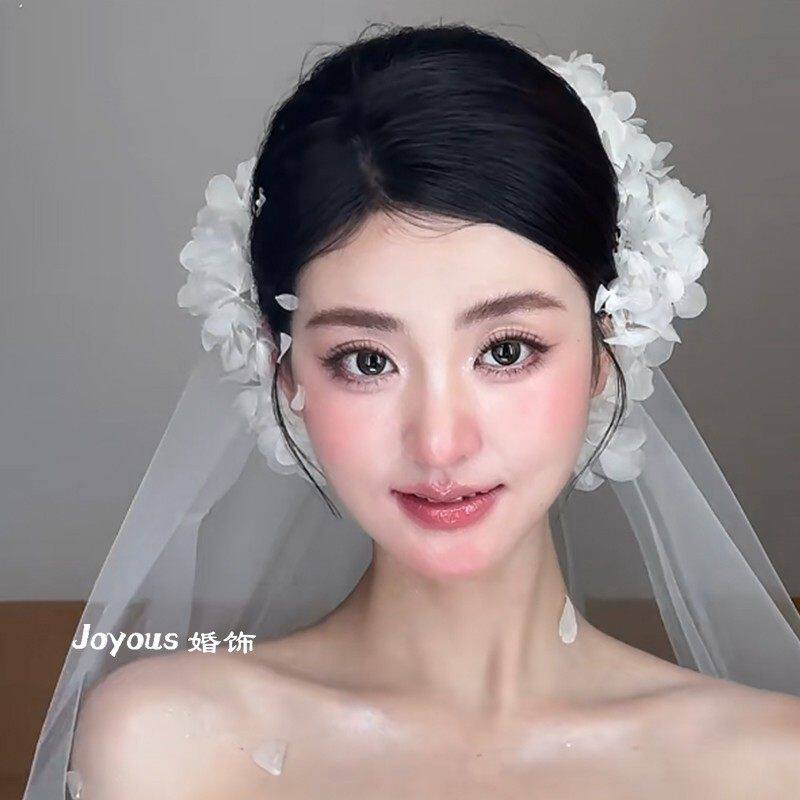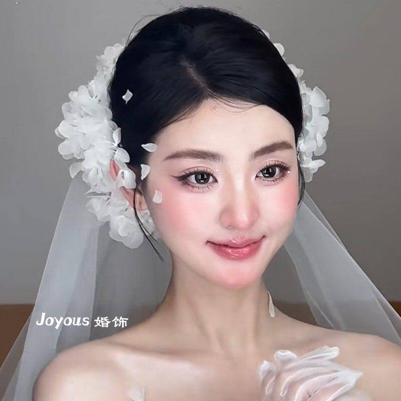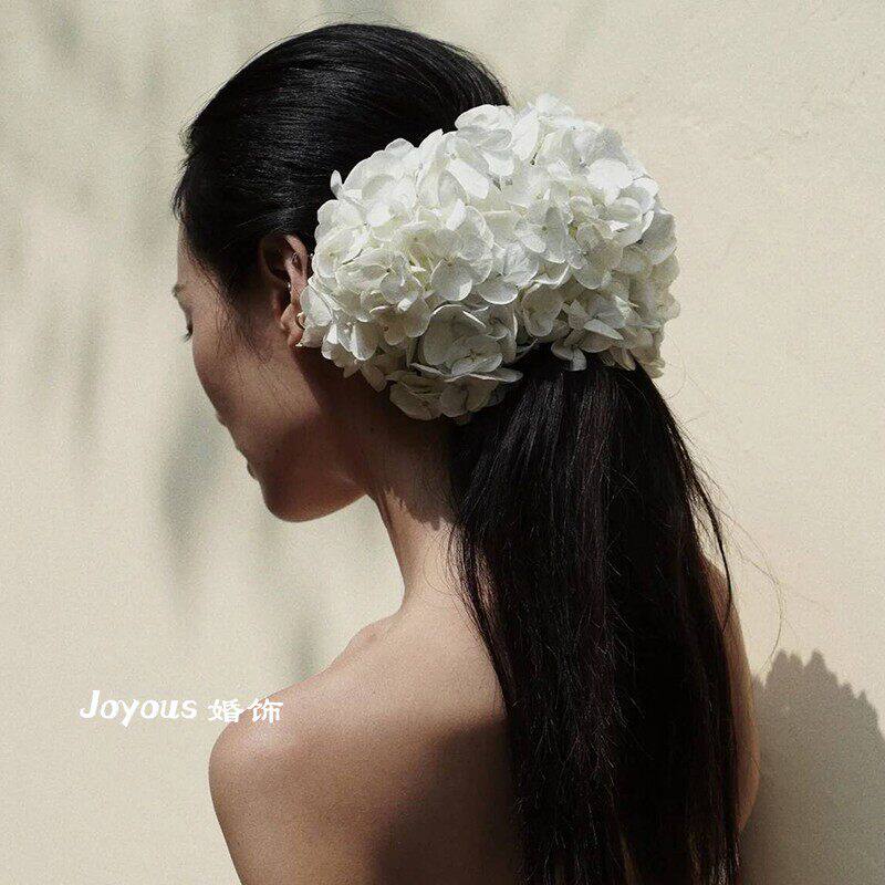 新娘森系白色绣球花朵头饰超仙气质盘发发饰结婚纱配饰高级感大气
