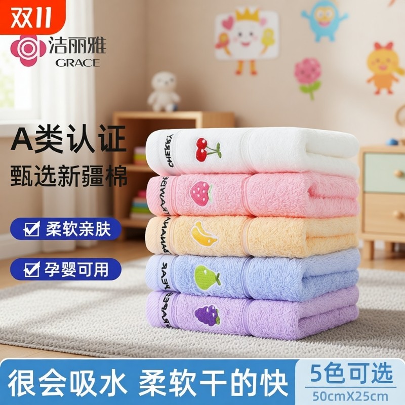 4条装洁丽雅儿童毛巾全棉纯棉宝宝专用洗脸小毛巾柔软吸水面巾