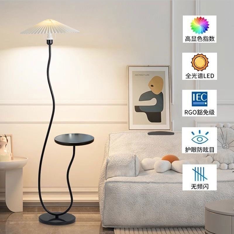 高级感落地灯客厅U型百褶置物架一体沙发茶几卧室氛围灯暖光护眼