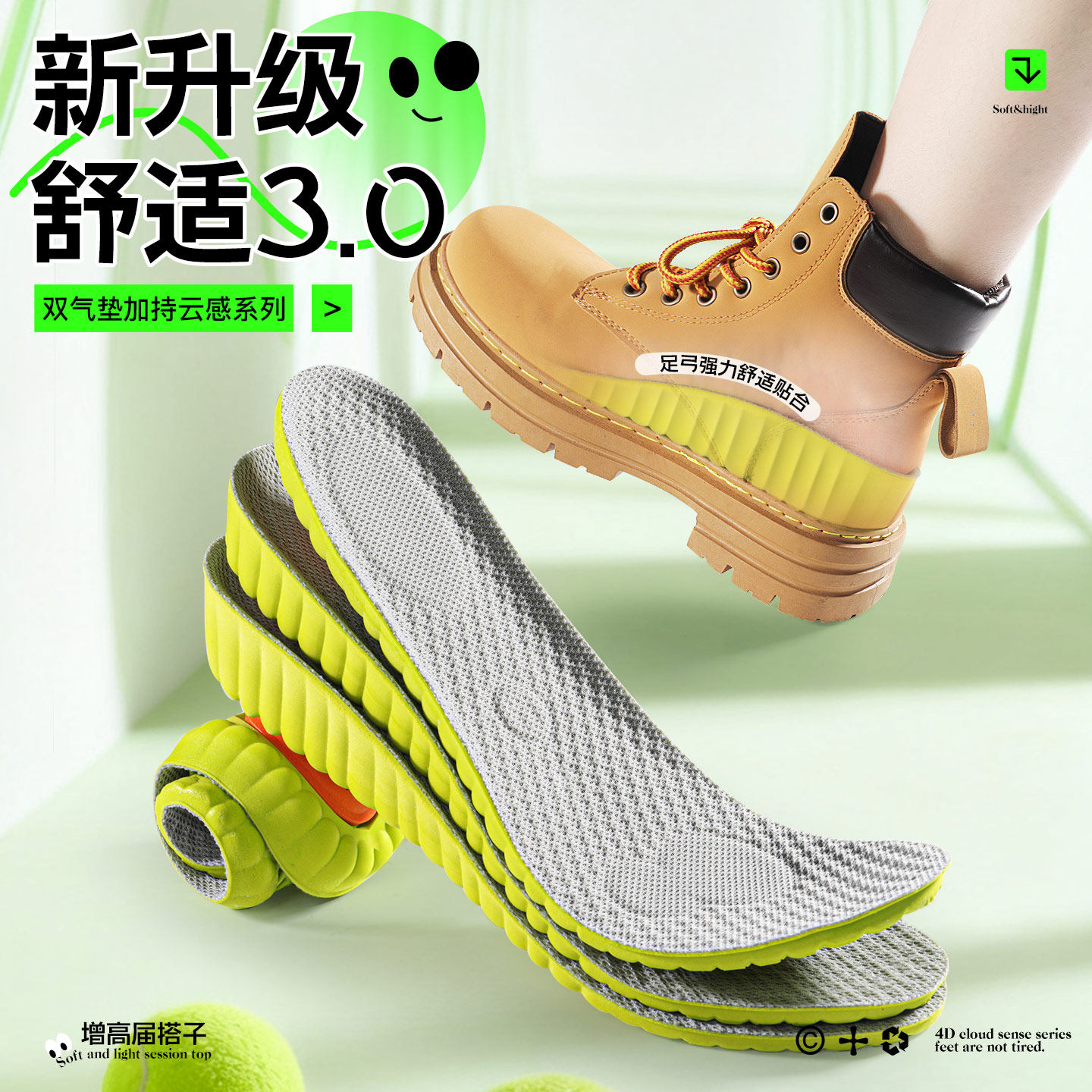 气垫增高鞋垫男女运动隐形内增高垫不累脚马丁靴吸汗防臭透气减震