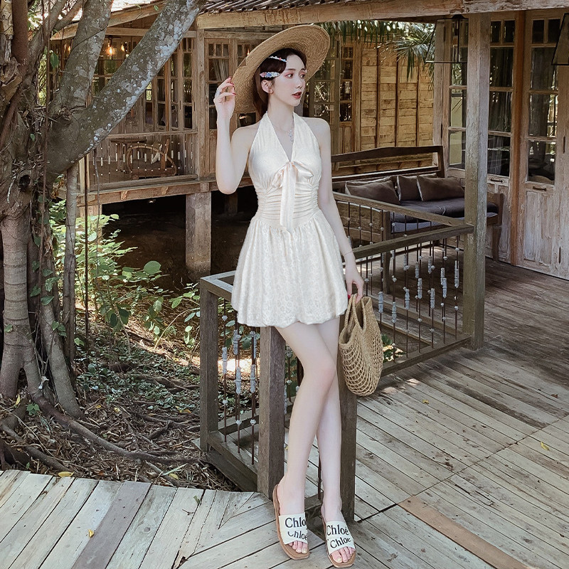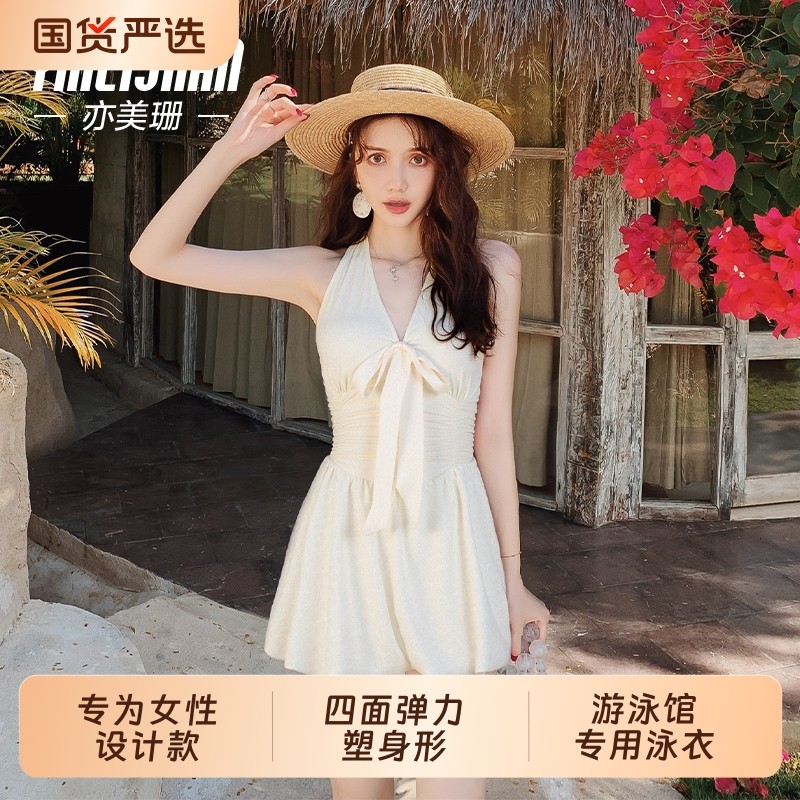亦美珊连体泳衣女泡温泉微胖女孩遮肉显瘦小胸挂脖高级感2025新款