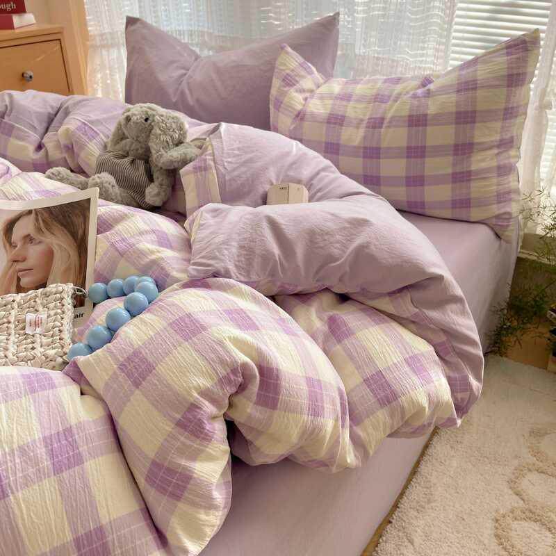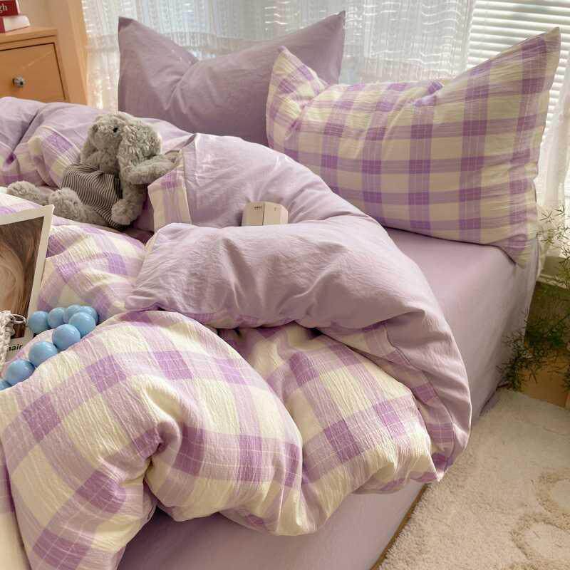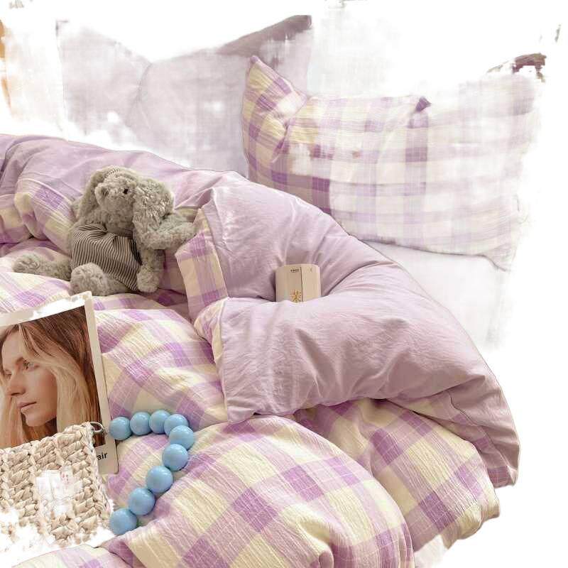 皱皱纱色织老粗布格子撞色四件套轻奢高档简约舒适家用可水洗柔软