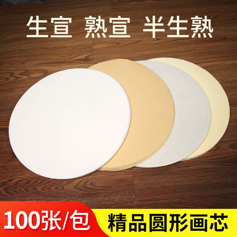 100张圆形宣纸画芯空白生宣半生熟云母熟宣画片加厚檀皮宣书法创作国画练习工笔画初学练习白色仿古麻色团扇