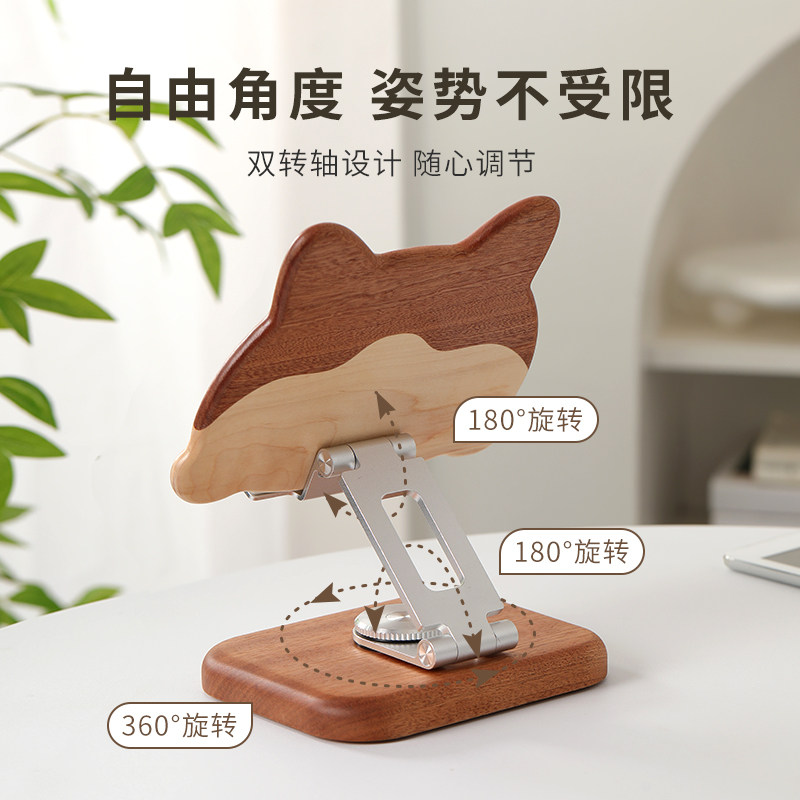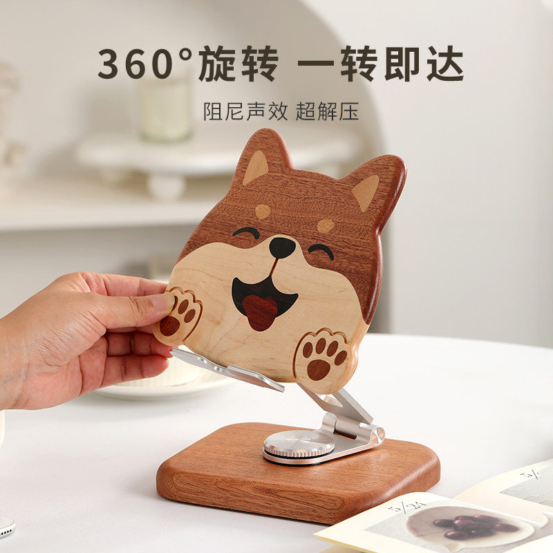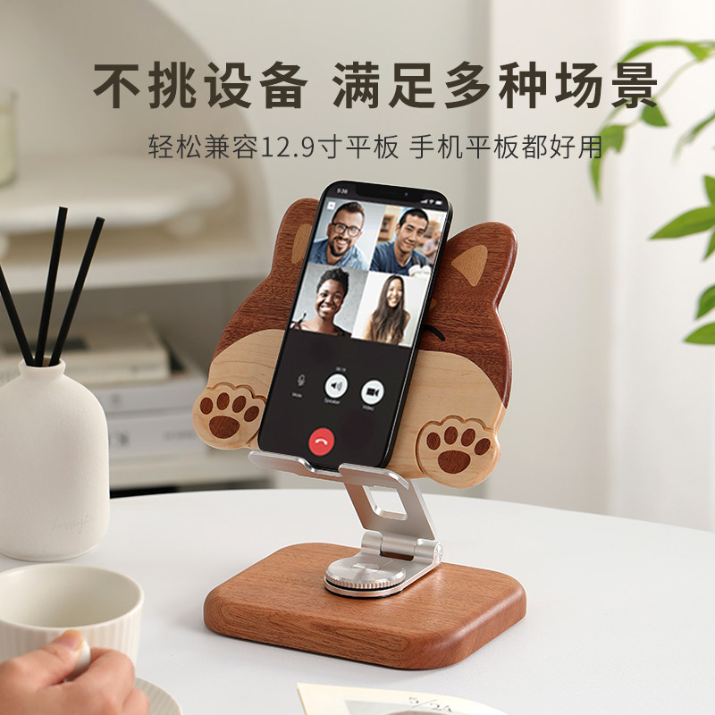 柴犬实木手机支架桌面创意卡通可爱柯基家用iPad平板支撑架懒人床头木质手机座可升降可旋转可折叠追剧直播