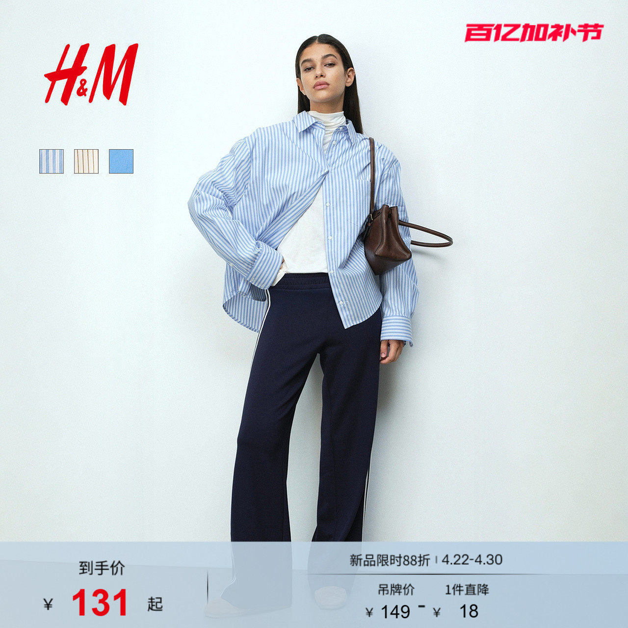 HM女装衬衫2026夏季新款智性条纹美学大廓形府绸衬衫上衣1316799