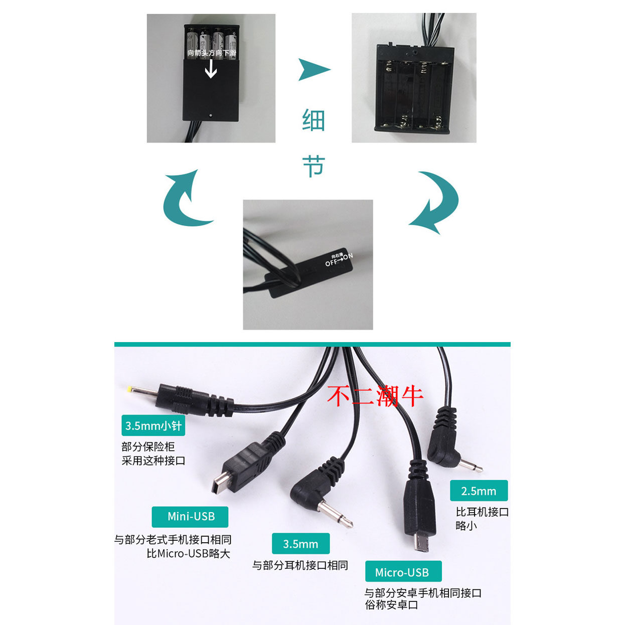 保险柜外接电池盒圆孔2.5mm6v通用内置外置应急电源盒充电电源线