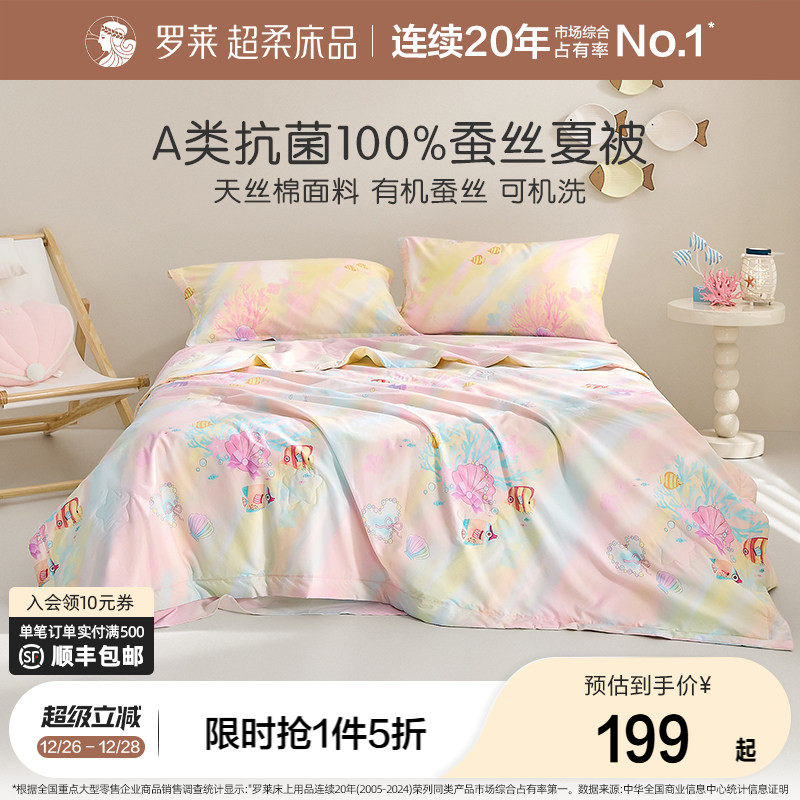 罗莱家纺儿童蚕丝被子宿舍夏被空调被芯A类莱赛尔学生四季抗菌