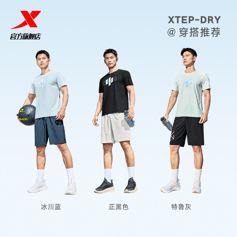 特步速干T男夏季宽松短袖冰丝户外跑步T恤透气上衣男士健身运动服