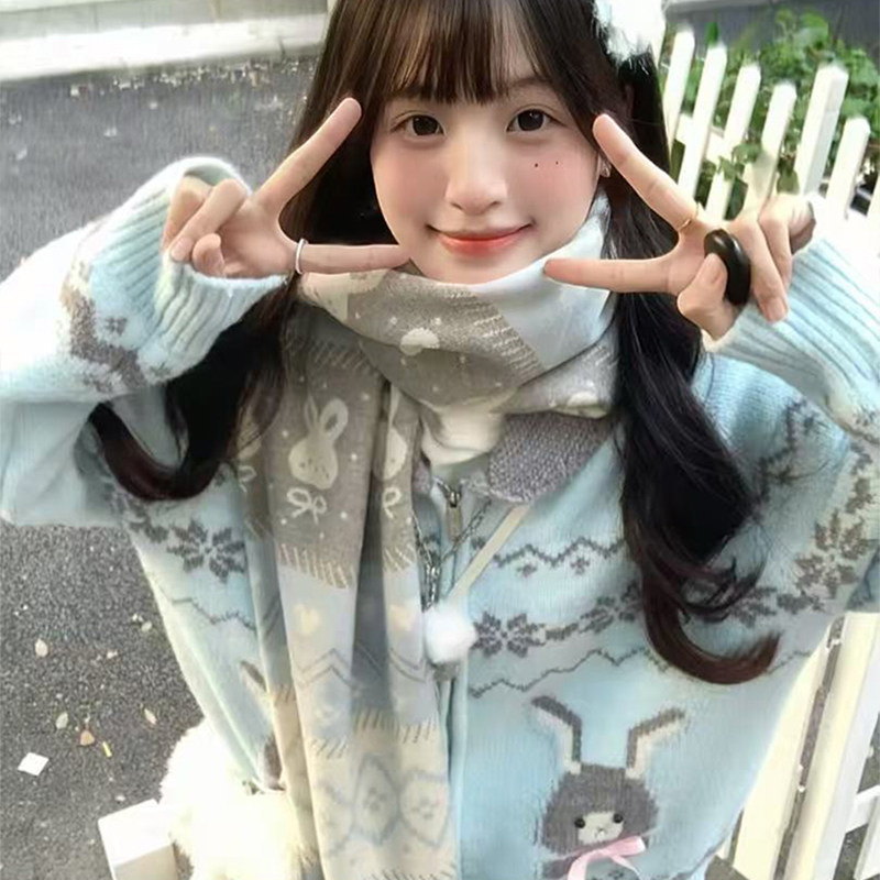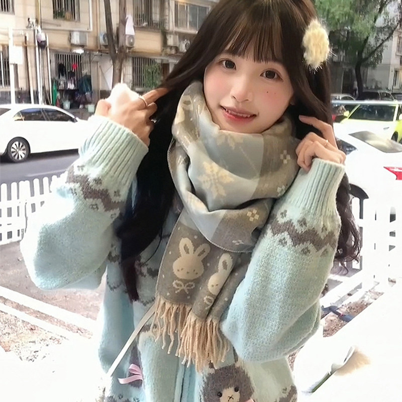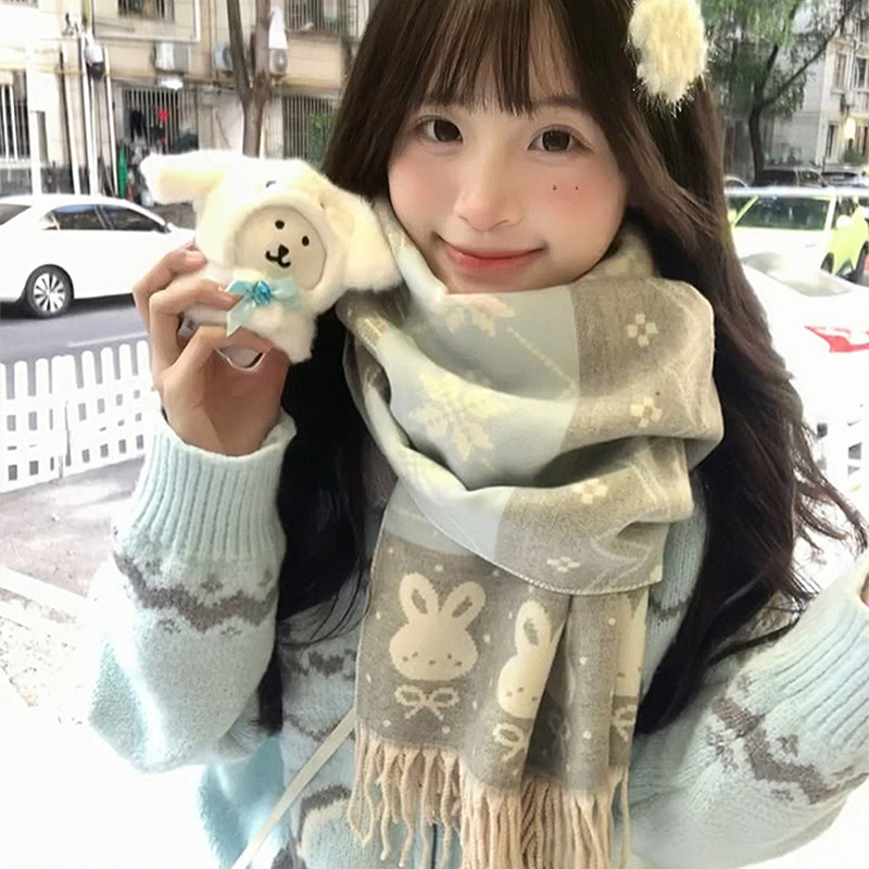 2025新款可爱兔围巾女秋冬韩系氛围感仿羊绒披肩两用双面保暖围脖