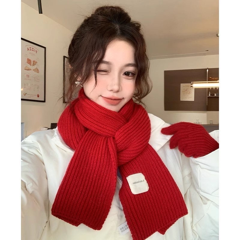 韩系红色围巾女冬季软糯百搭氛围高级感新年礼物针织毛线围脖披肩