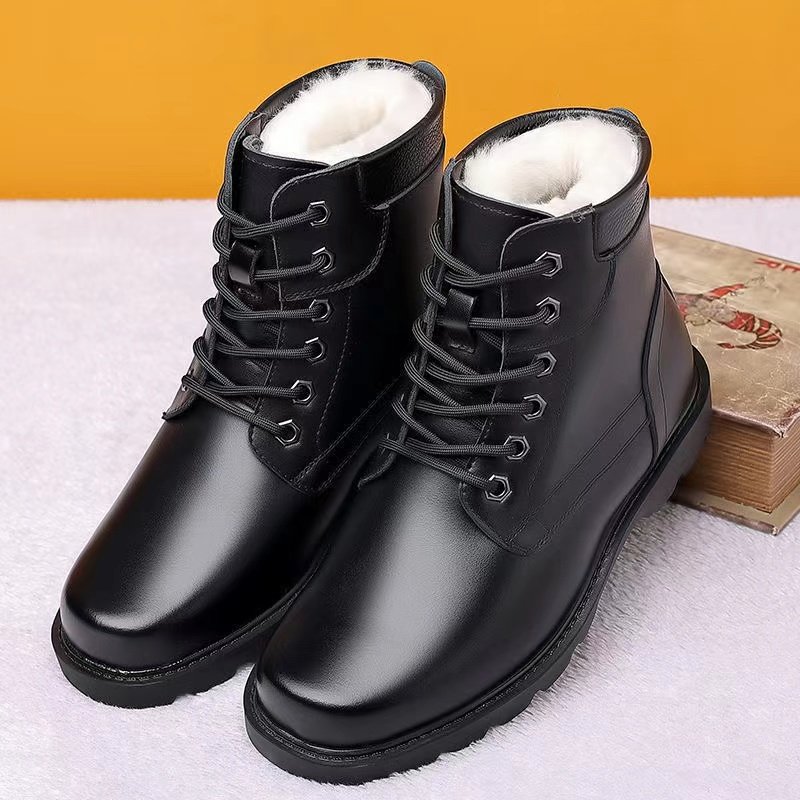 冬季男士棉鞋加绒加厚羊毛雪地靴男真皮高帮马丁靴爸爸鞋防水防滑