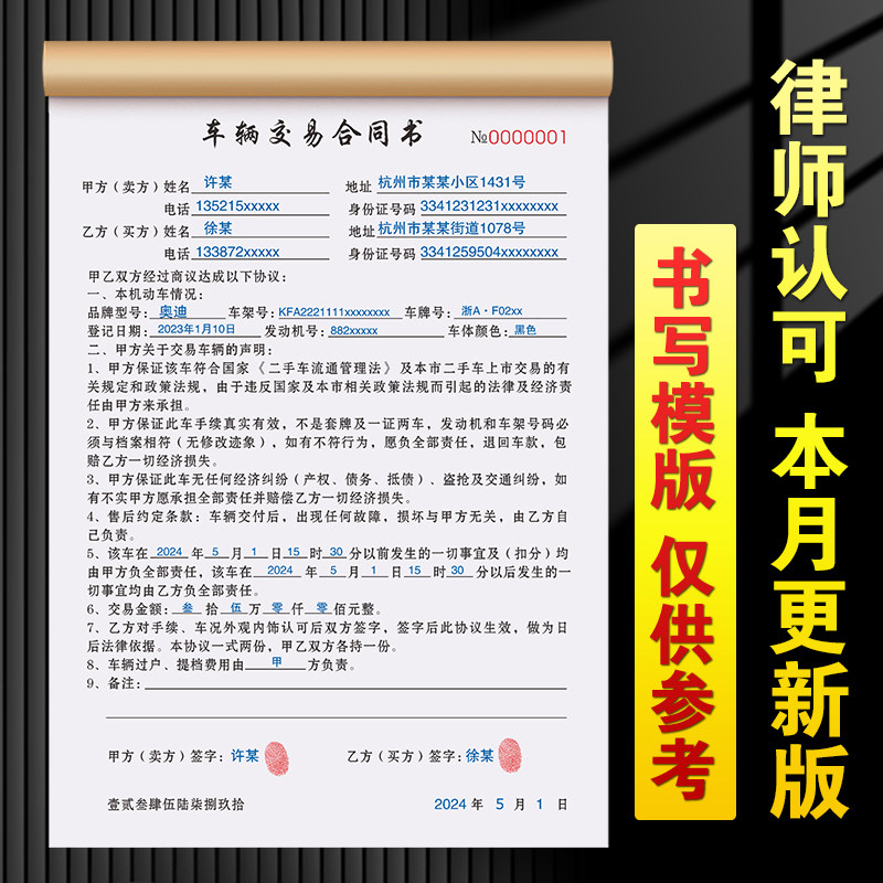 【车商免责】车辆交易合同二联车辆转让单购车收购意向书汽车销售清单个人买车卖车单据机动车二手车买卖协议