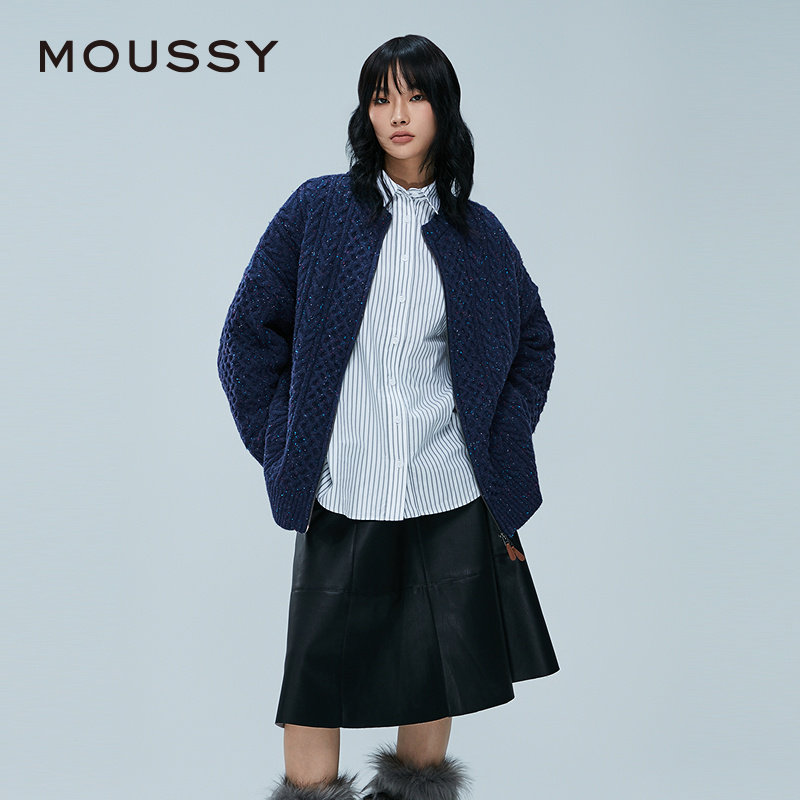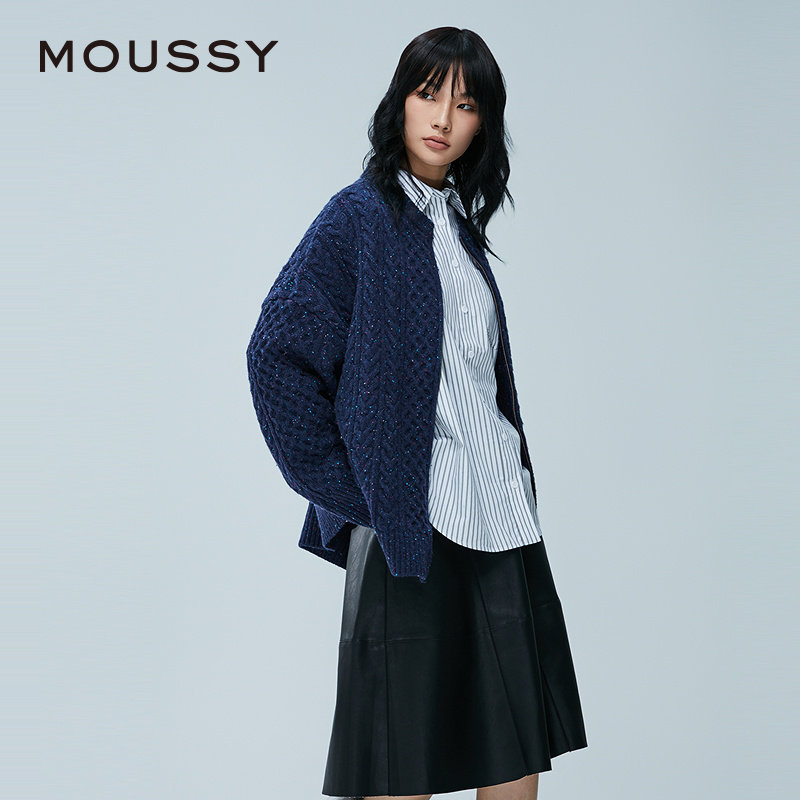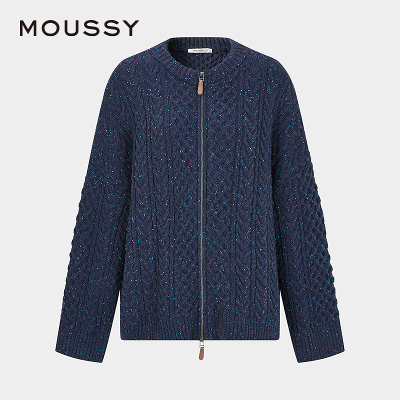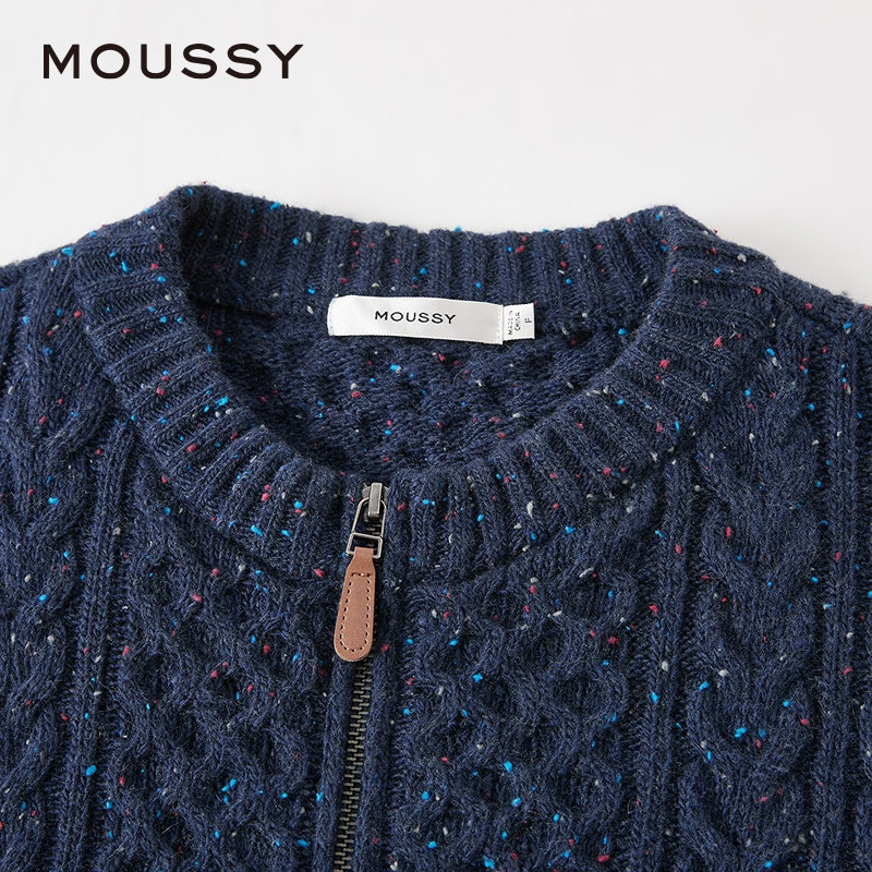 moussy 冬季新品绞花OVERSIZE拉链针织开衫外套028IAZ70-1029
