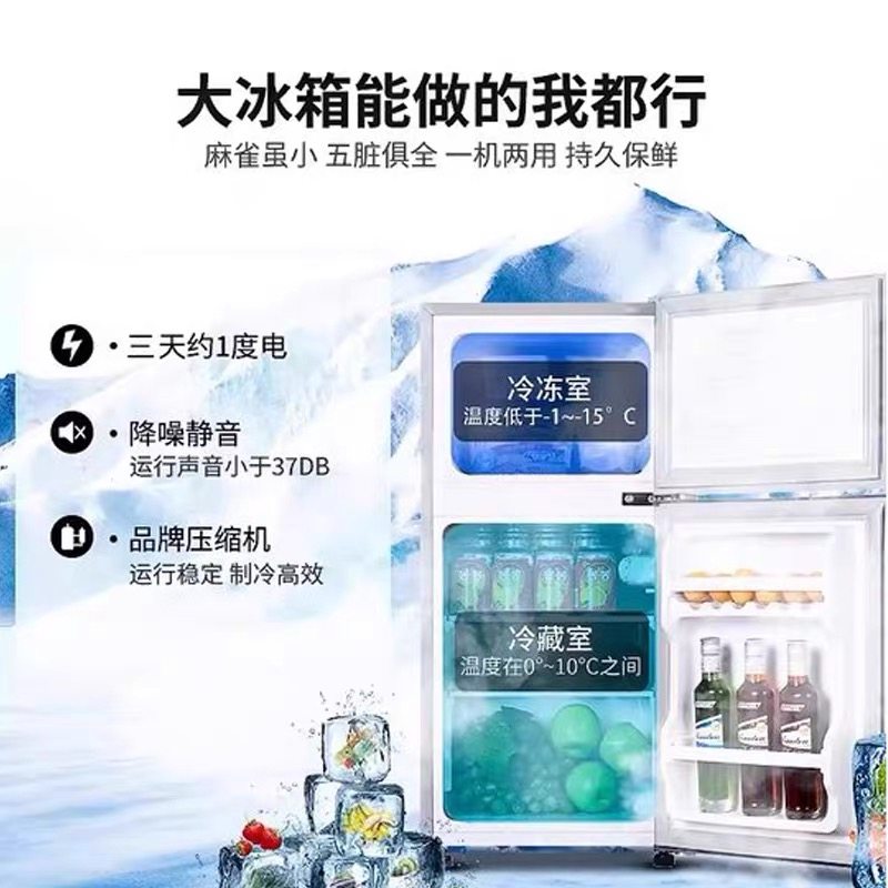 冰熊小冰箱家用小型宿舍租房用冷冻冷藏迷你双开门电冰箱一级节能