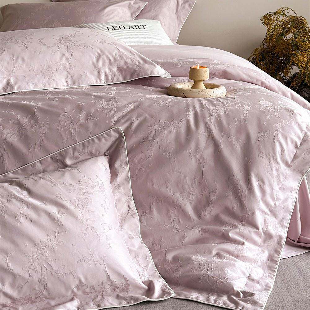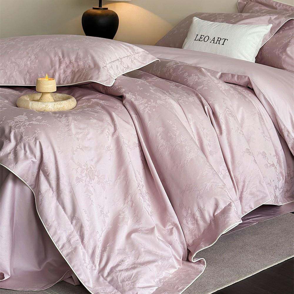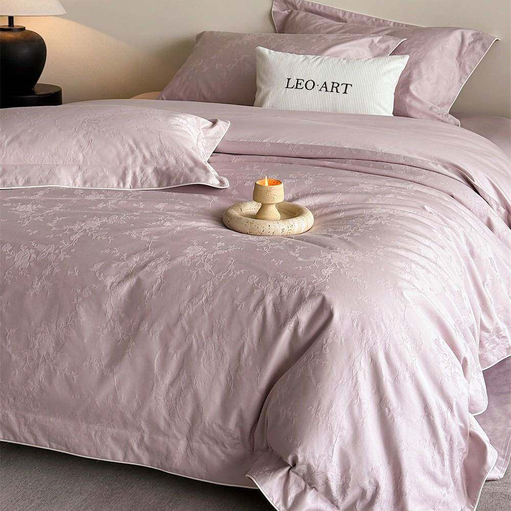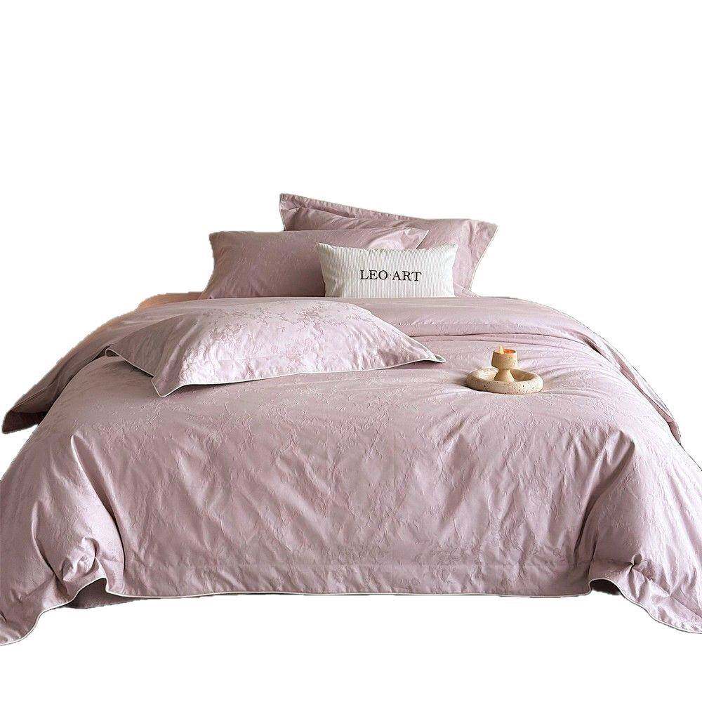 轻奢简约长绒棉全棉提花四件套柔软纯色四季皆宜床单被套1.8m床品