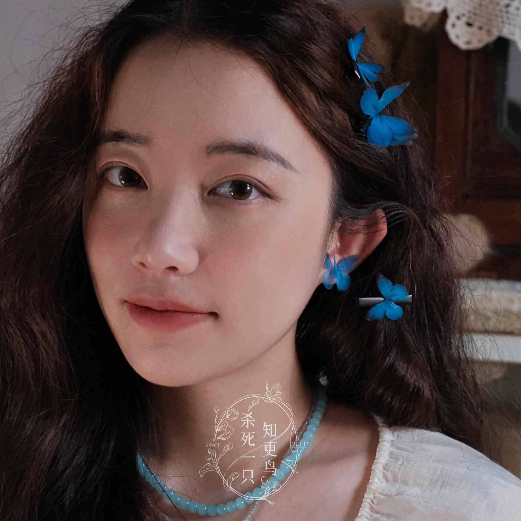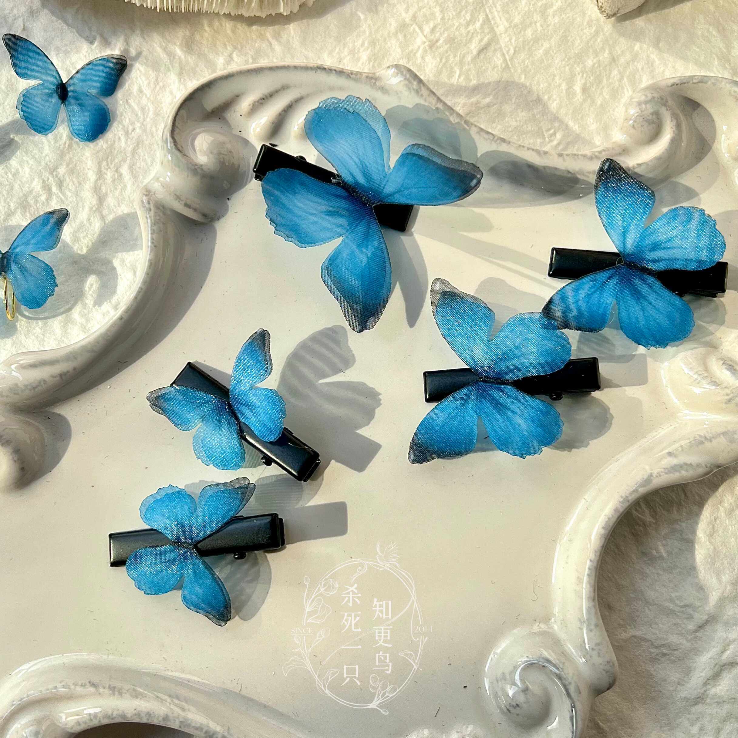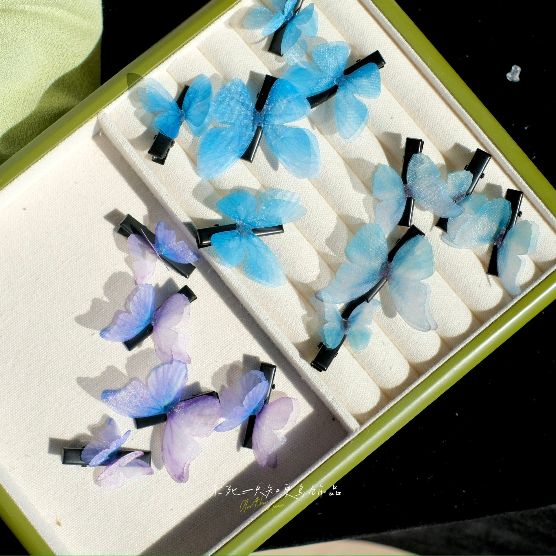 《大蓝闪蝶》春夏仙气氛围感立体网纱蝴蝶侧边发夹发饰刘海夹套装