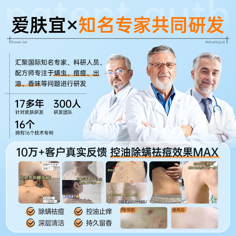 香水沐浴露男士持久留香三合一72小时除螨祛痘洗浴套装官方正品
