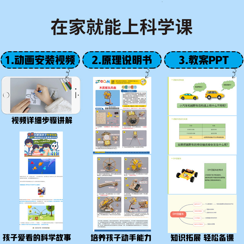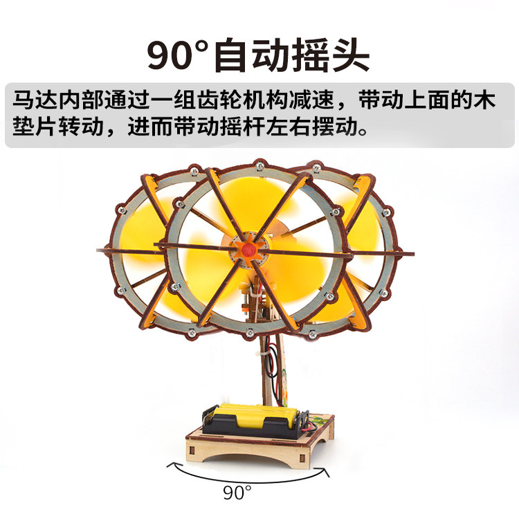 科技小制作木质摇头风扇儿童小学生手工拼装模型科学小实验