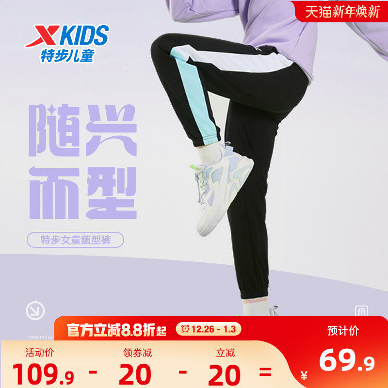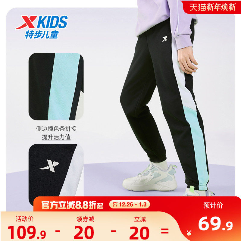 特步童装女童拼接长裤2025秋冬新款儿童运动裤中大童裤子冬装卫裤
