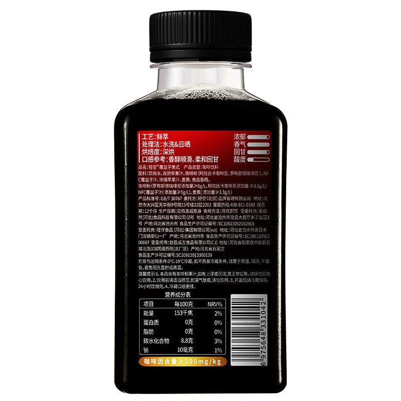 轻空覆盆子美式咖啡饮料300ml 18瓶整箱 添加印度姜黄NFC覆盆子汁