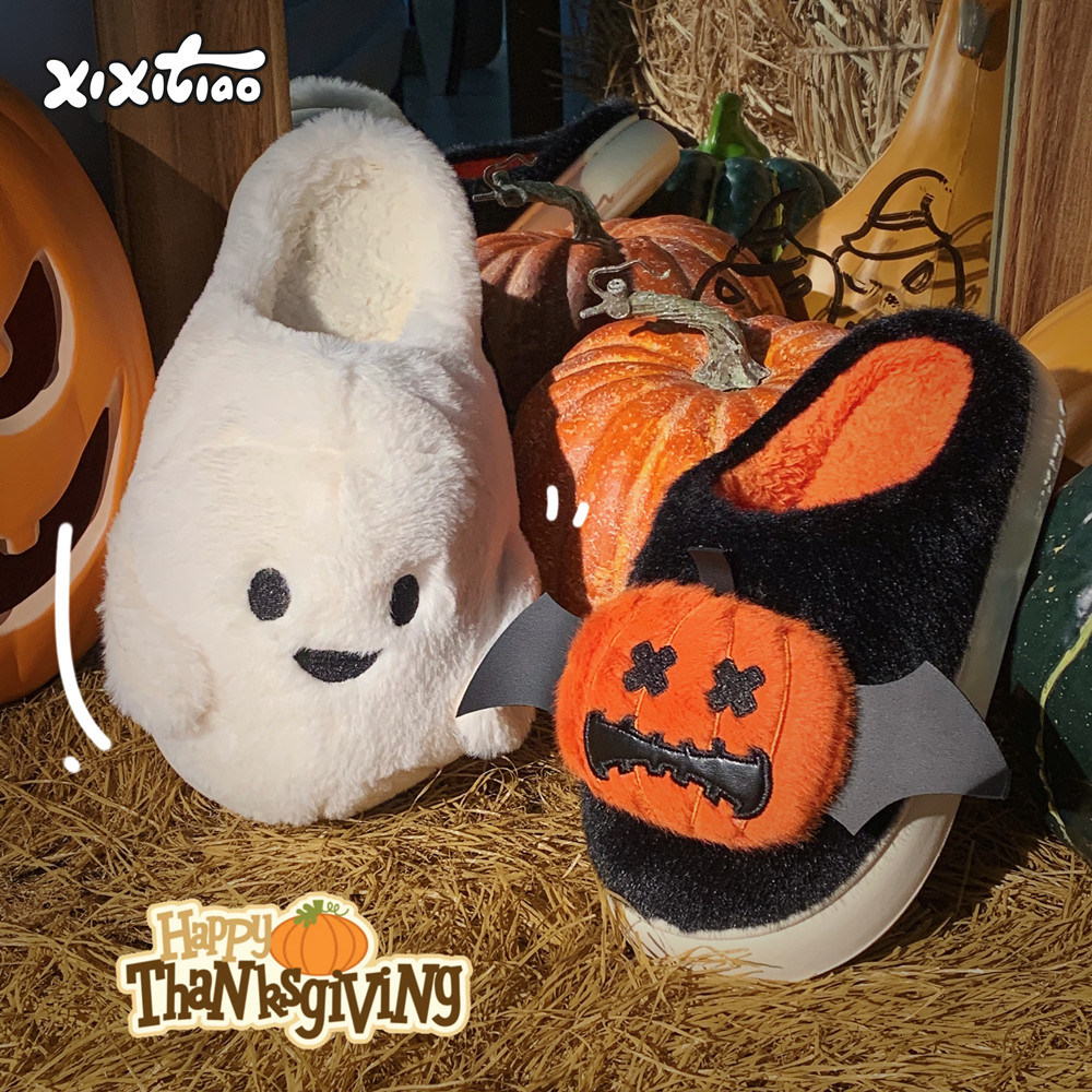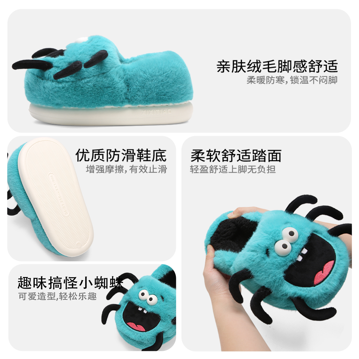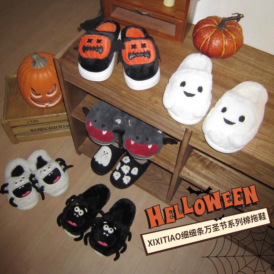 细细条男女搞怪棉拖鞋保暖情侣ins冬季室内毛毛鞋全包居家棉南瓜