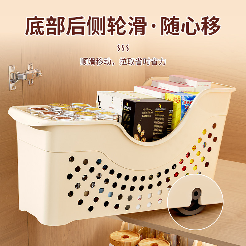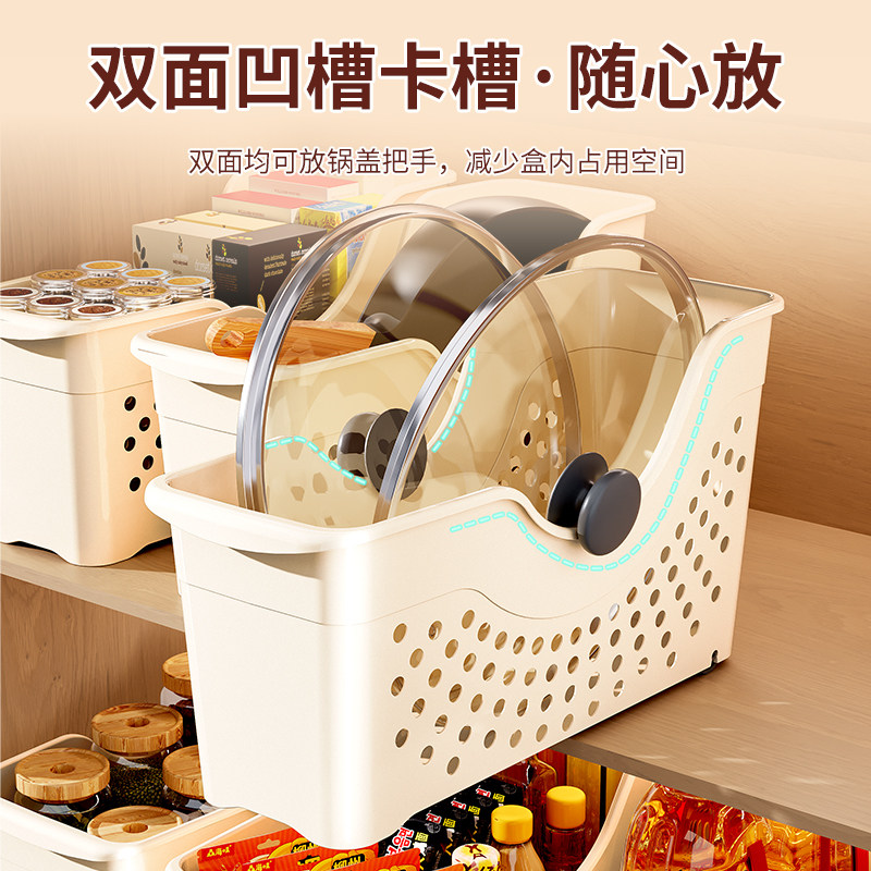 厨房锅具收纳盒整理盒锅盖调料带滑轮下水槽橱柜收纳多功能收纳架