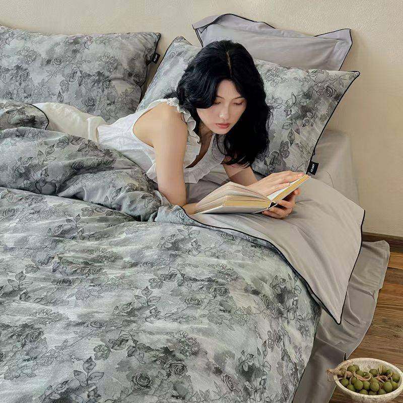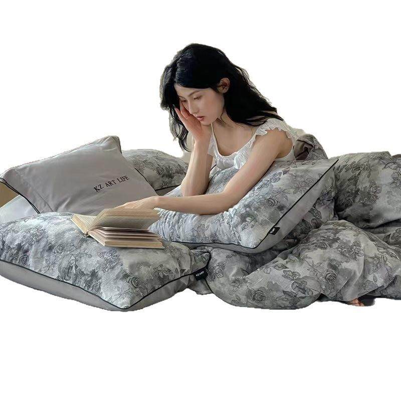 秋冬100支全棉磨毛感四件套水洗色织提花1.8m纯棉床上用品套件