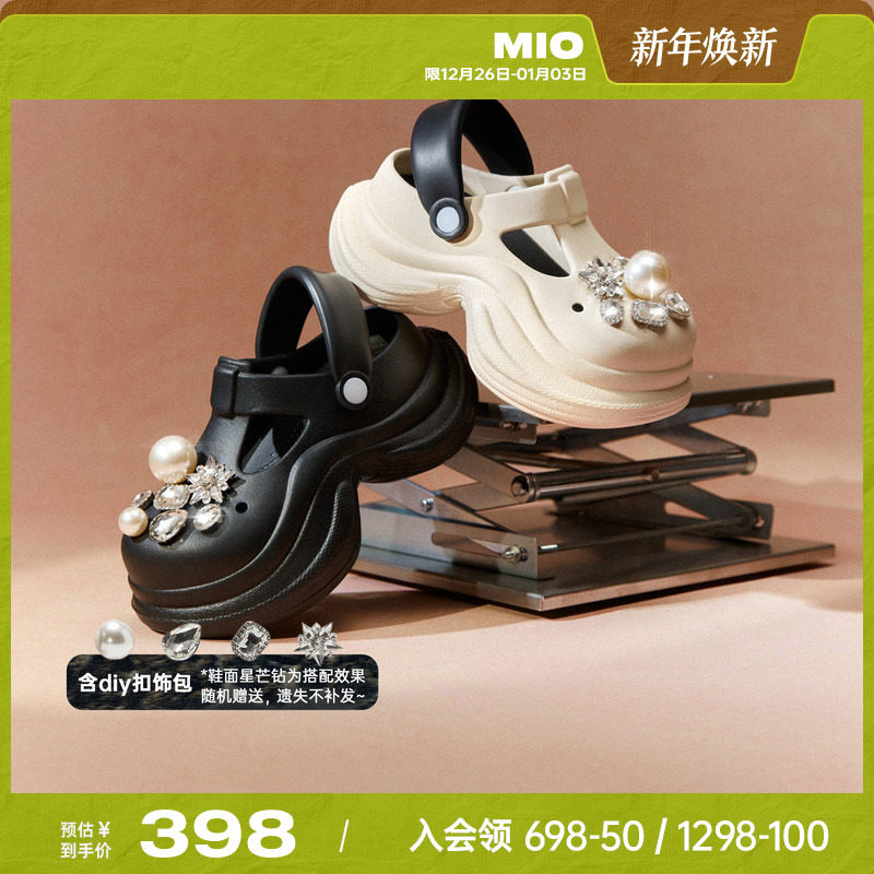 MIO米奥洞洞鞋女鞋2025夏季新款户外凉拖鞋厚底增高凉鞋沙滩鞋