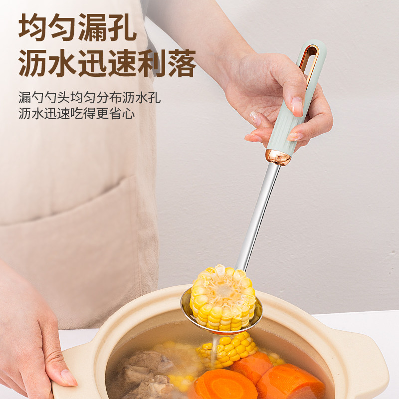 食用不锈钢汤勺304大号盛汤食品级家用高档精致长柄火锅勺漏勺子