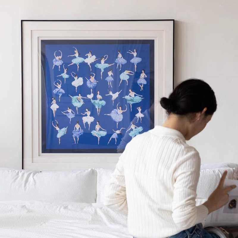 芭蕾女孩 克莱因蓝现代装饰画客厅氛围感沙发背后画卧室床头摆画