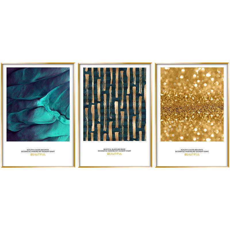 后现代金色轻奢客厅装饰画loft样板房简约抽象挂画沙发背景三联画