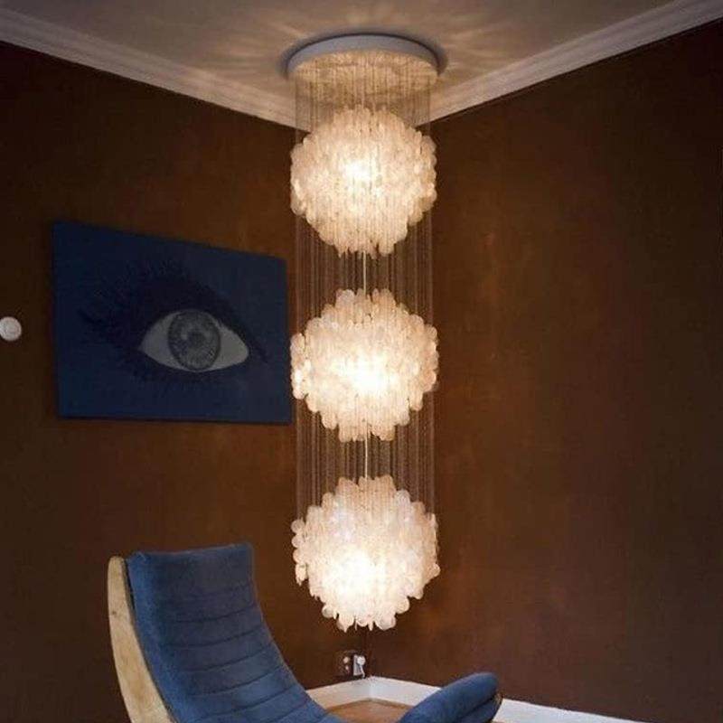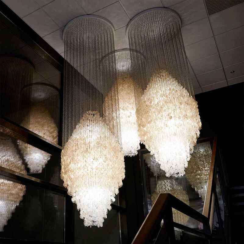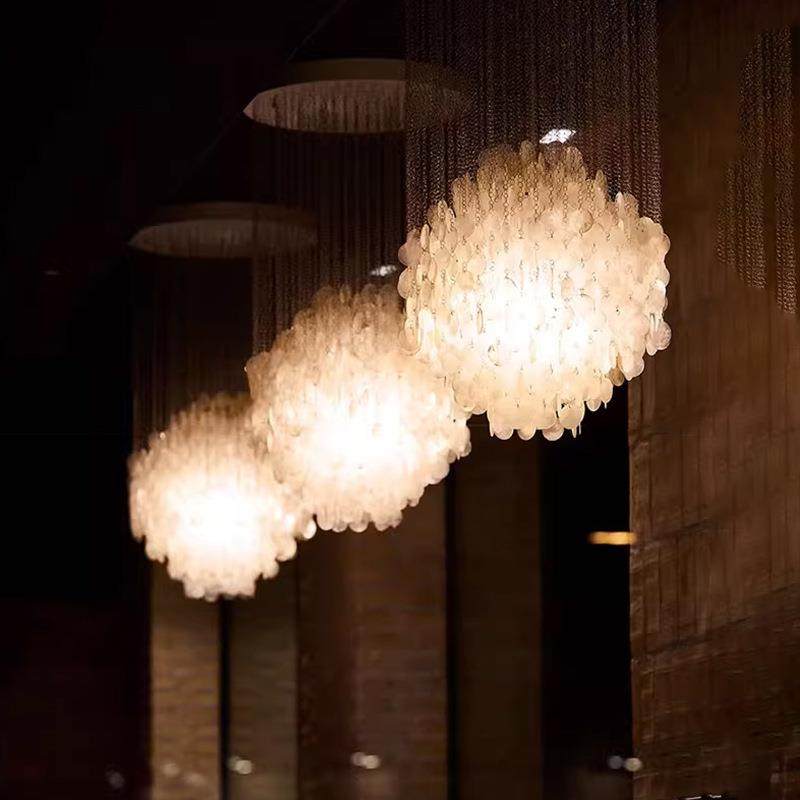 创意时尚Loft复式楼大堂挑高别墅客厅楼梯间天然贝壳片长款吊灯