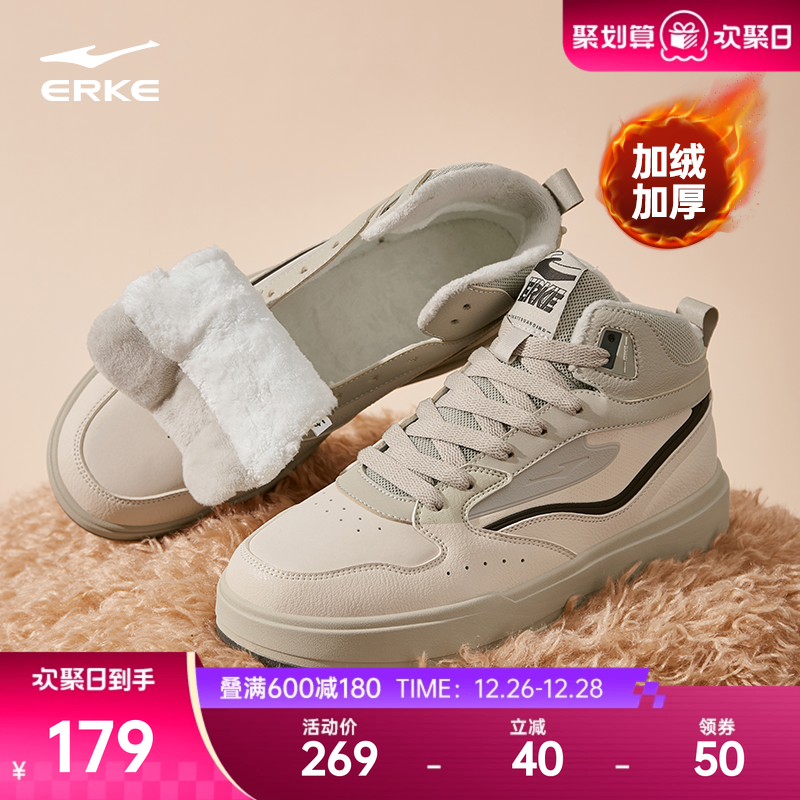 鸿星尔克板鞋男鞋冬季新款加绒鞋子加厚棉鞋男士休闲鞋高帮运动鞋