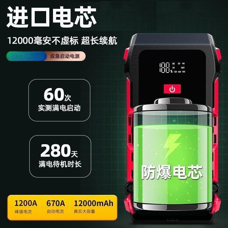 跨境汽车应急启动电源充气泵一体搭电宝便携电瓶充电打火启动器