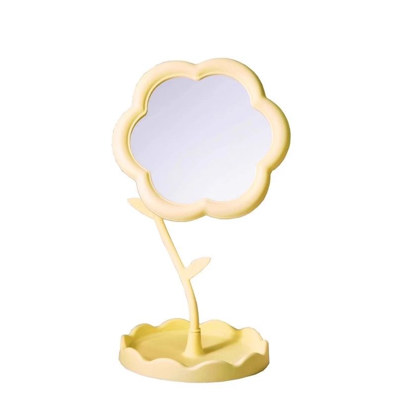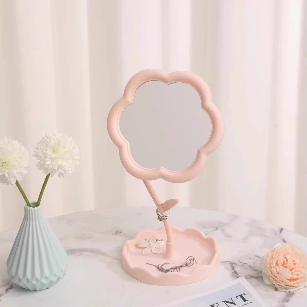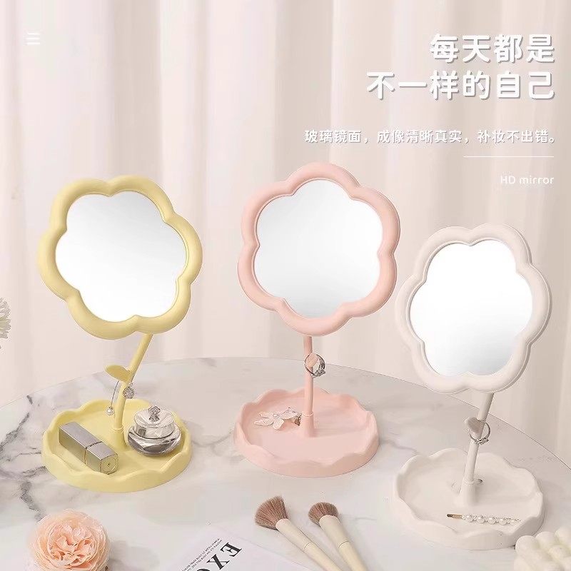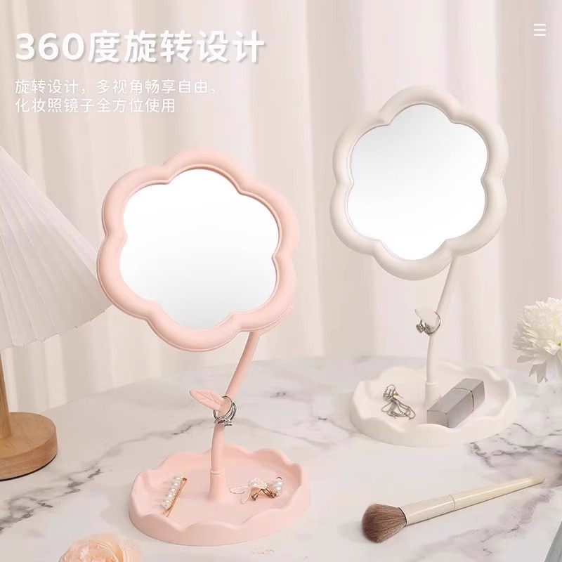 奶油花朵化妆镜台式桌面镜子办公室学生宿舍家用高清可旋转梳妆台