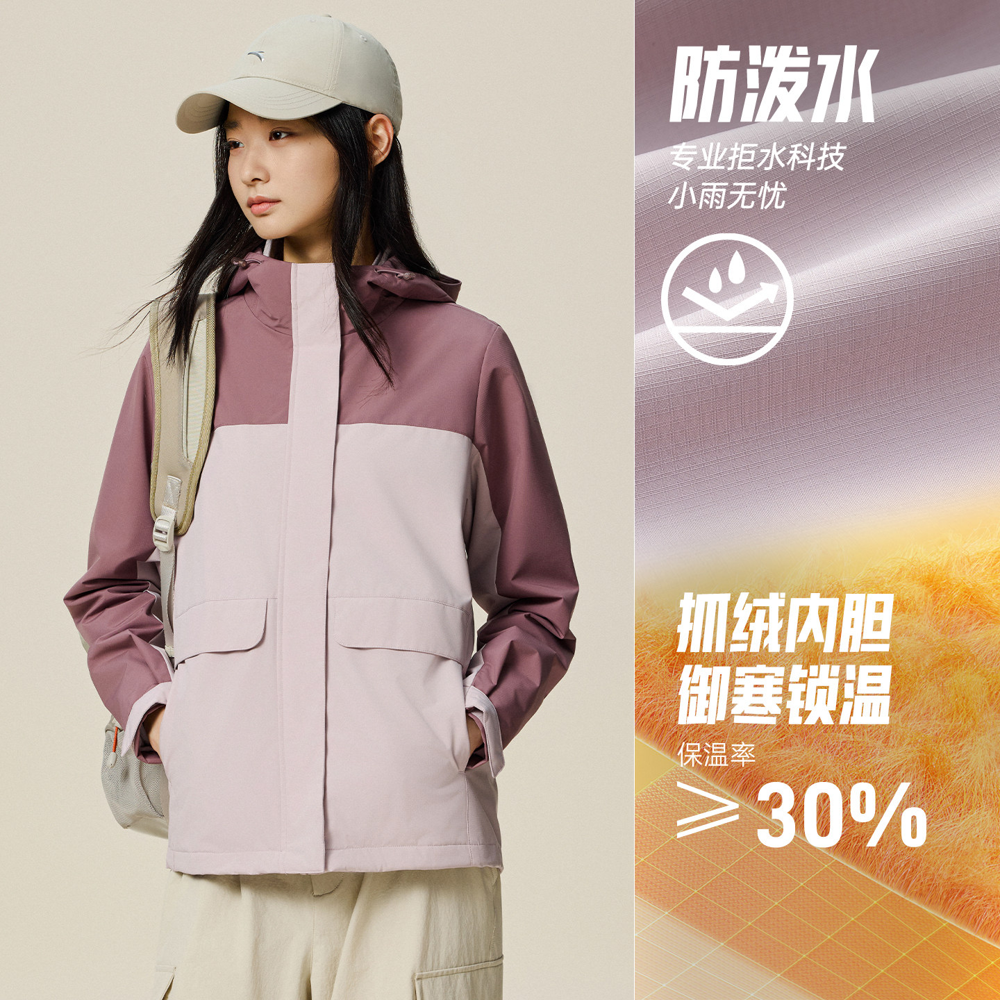 安踏抓绒内胆三合一外套女2025冬季新款夹克上衣两件套162547601