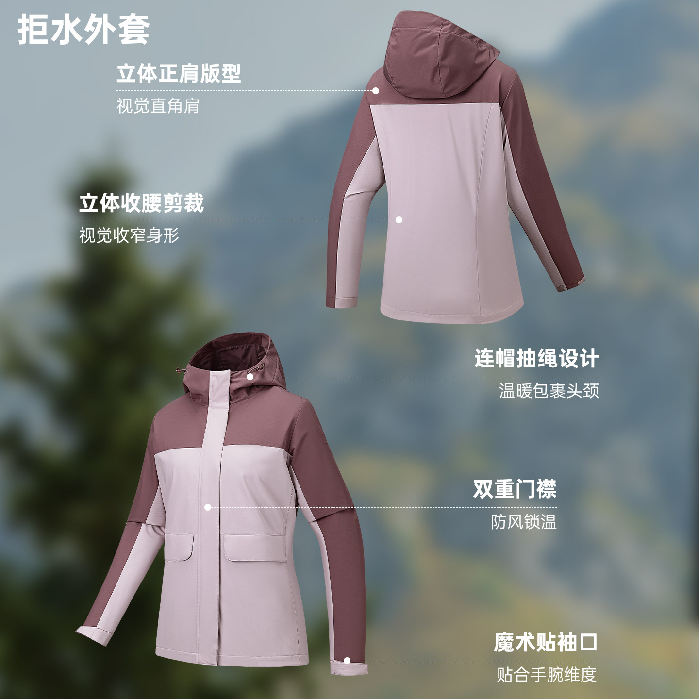 骆驼运动登山服外套女士秋冬加绒连帽夹克户外防风防水休闲茄克男