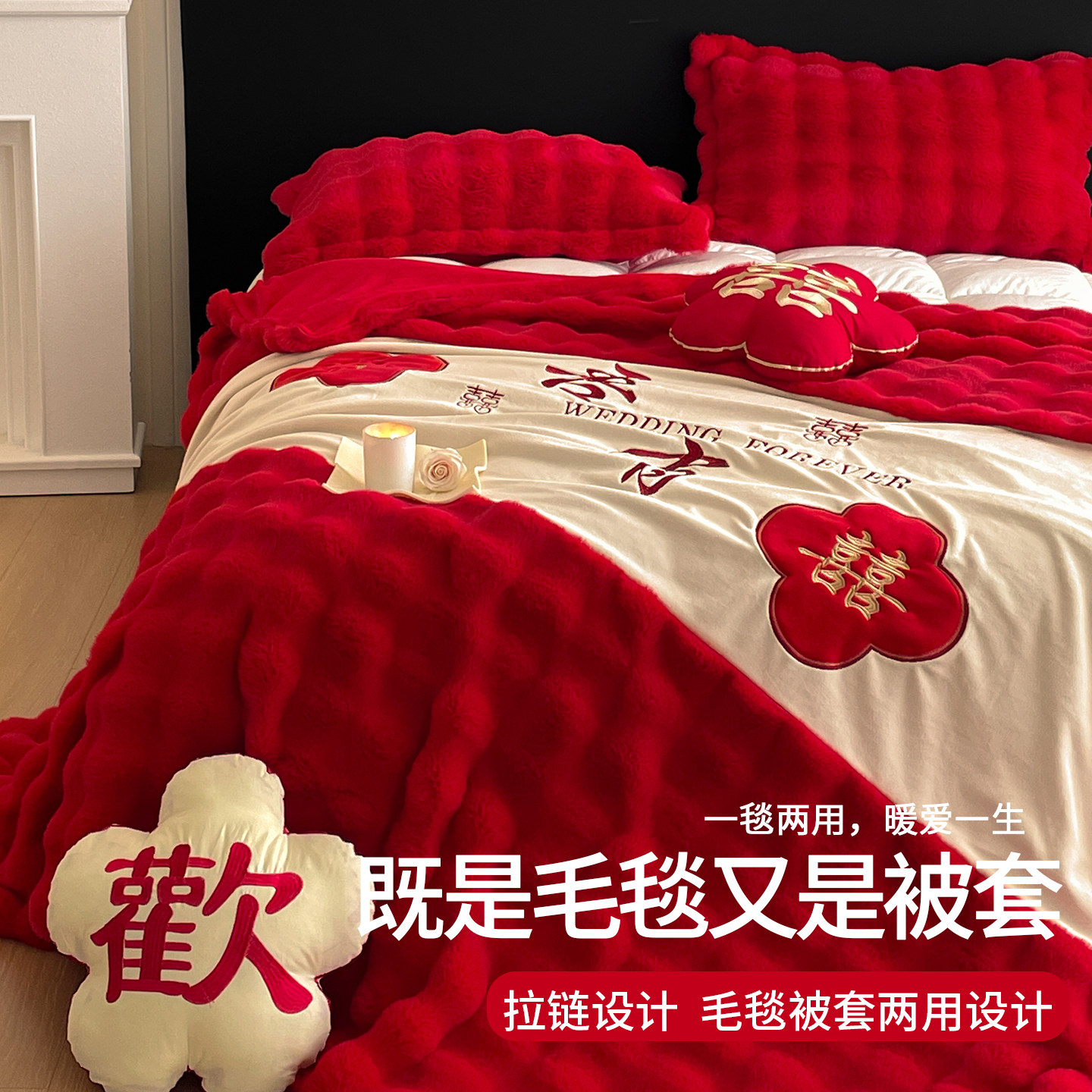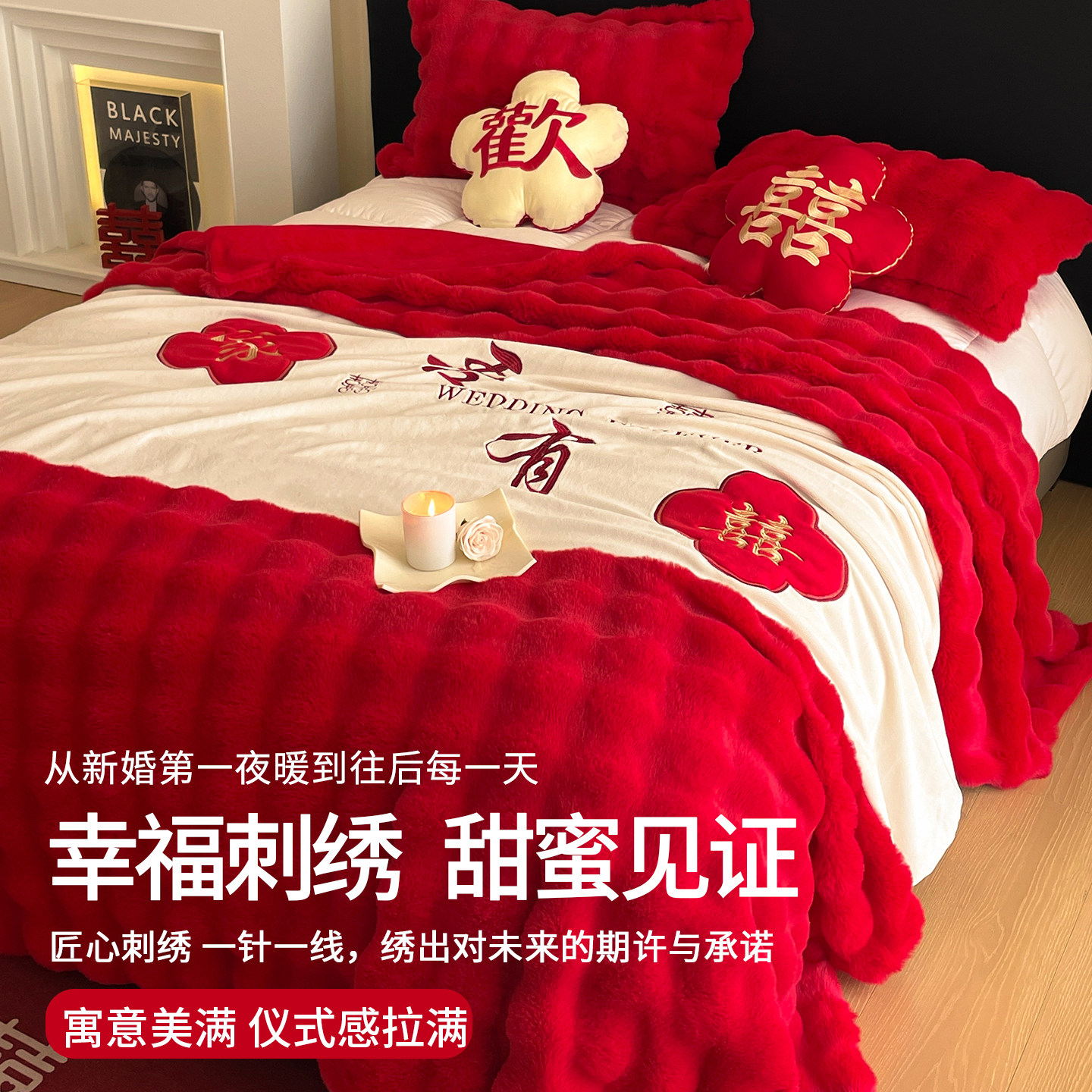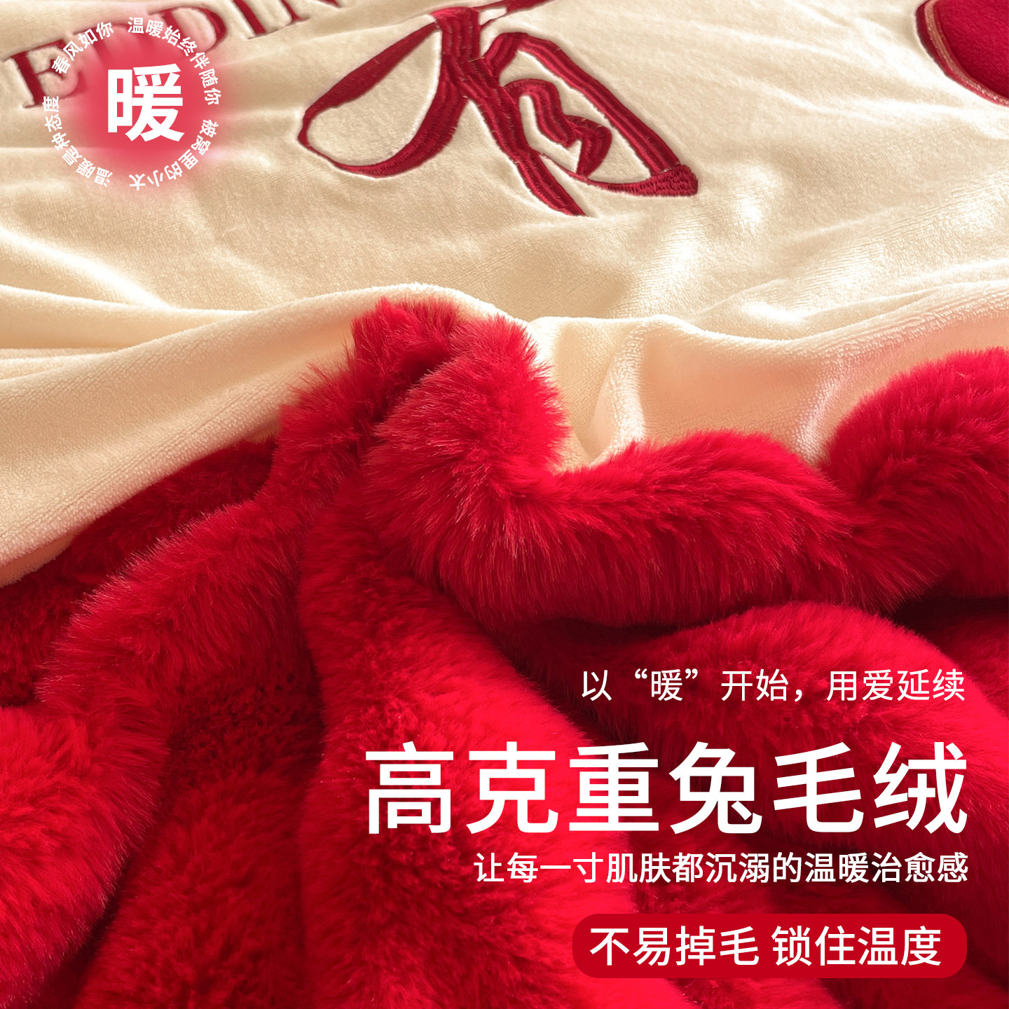婚庆牛奶绒毛毯沙发毯子午睡毯披肩珊瑚绒加厚盖毯冬季加绒小被子
