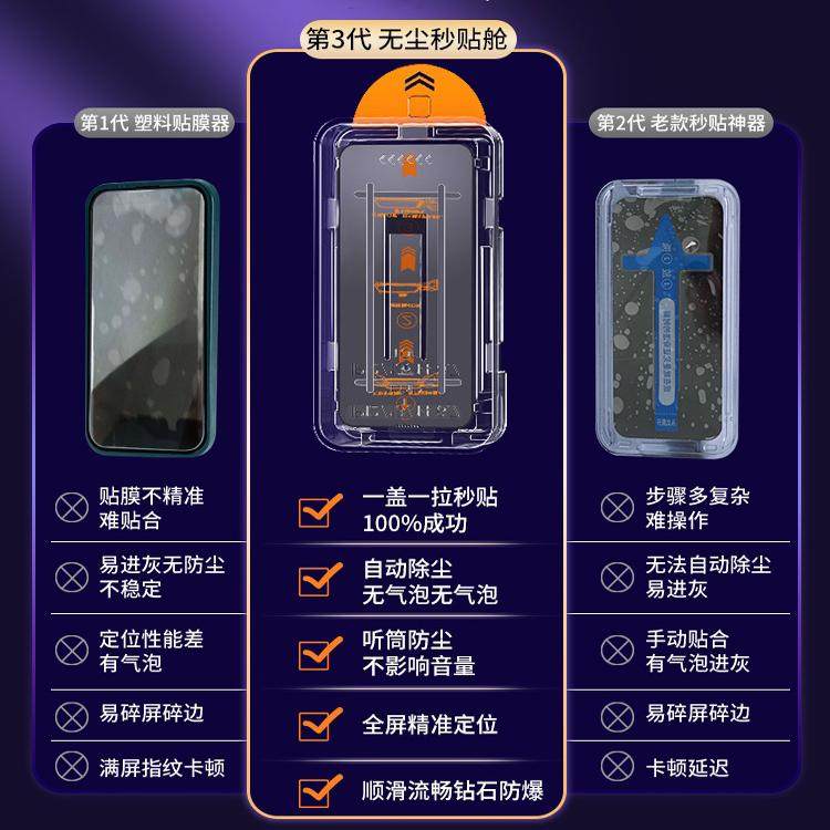 无尘仓适用苹果16Promax钢化膜iPhone13/14pro新款秒贴膜神器15手机全屏x保护xr防偷窥xsmax防尘网ip12pro贴