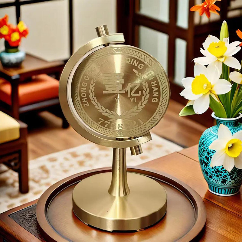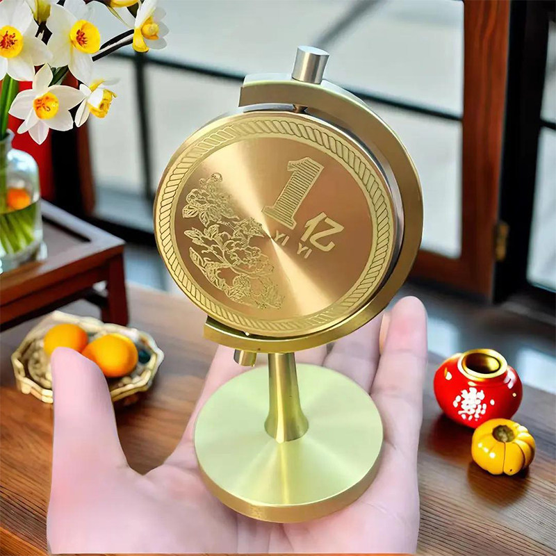 一个亿黄铜摆件时来运转创意书房办公室桌面解压旋转硬币装饰品