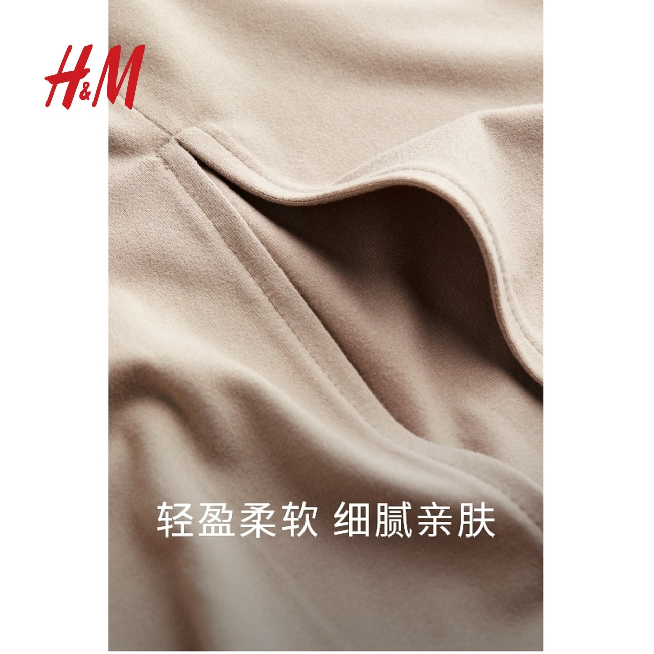 HM女装连衣裙冬季弹力修身圆领A字优雅气质长裙1224538